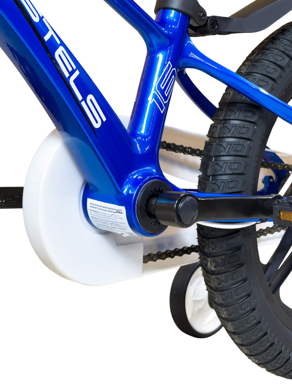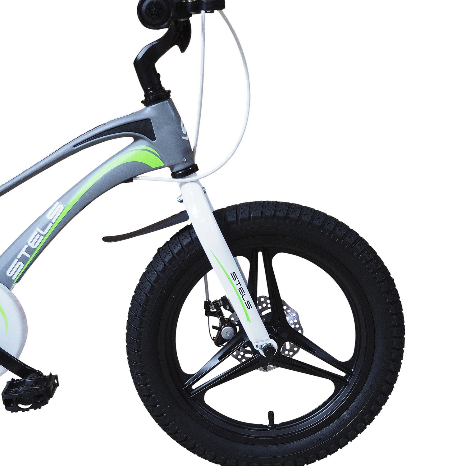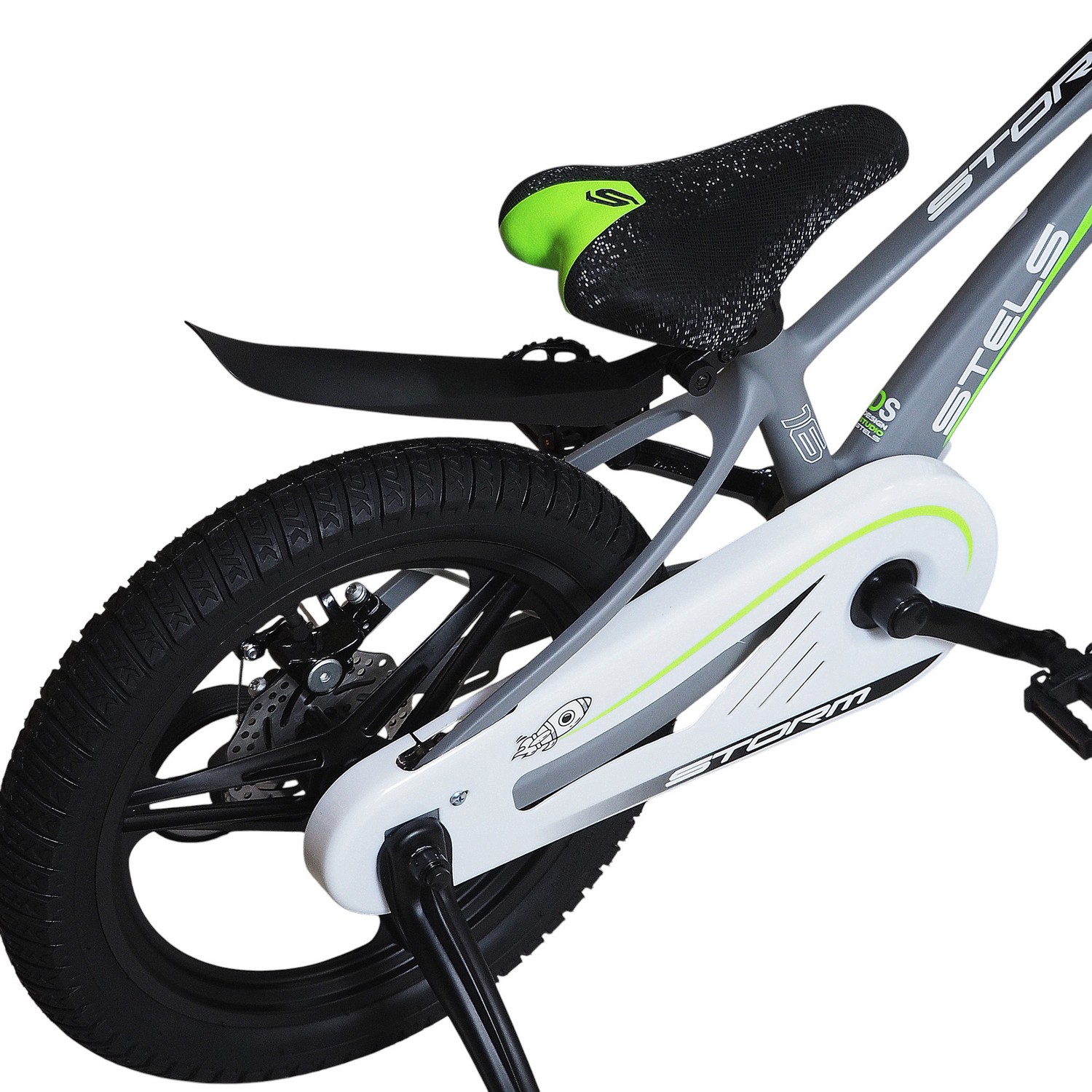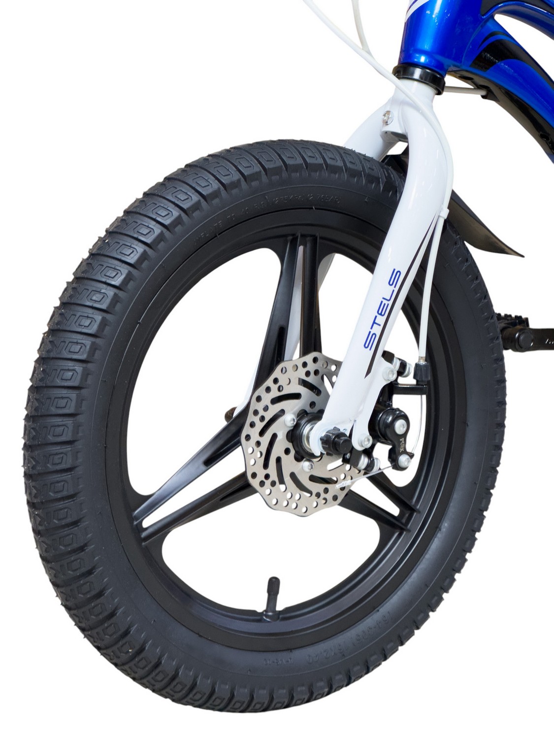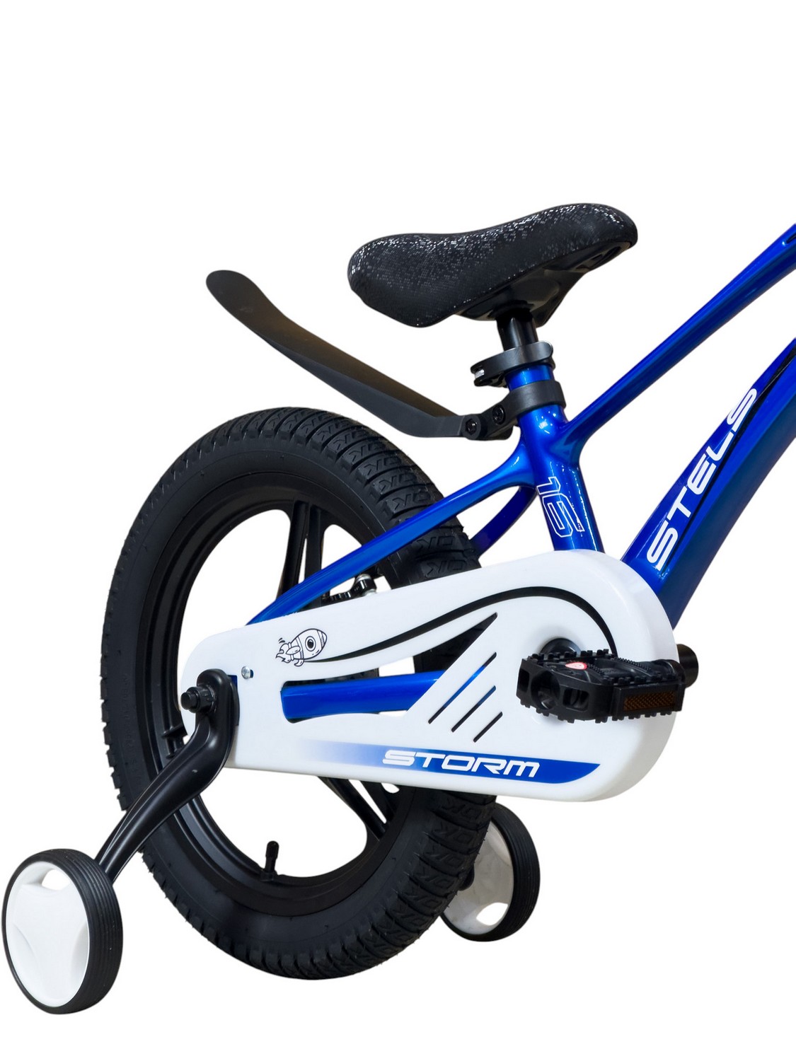 Велосипед, предназначенный для детей в возрасте от трех до шести лет, без переключения передач. Технические особенности: легкая рама из магниевого сплава (скрытая проводка, прямой рулевой стакан, кареточный стакан BSA, крепление калипера IS), жесткая стальная вилка (крепление калипера IS), литые магниевые колеса (под ниппель AV), дисковые механические тормоза (роторы 120/120 мм), полная защита цепи, съемные боковые колеса, крылья, звонок. Подходит для обучения и прогулочного катания в городских условиях. Диаметр колес - 16 дюймов. Вес - 8,9 кг.