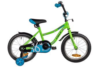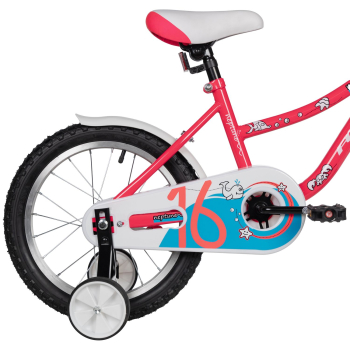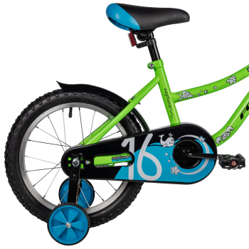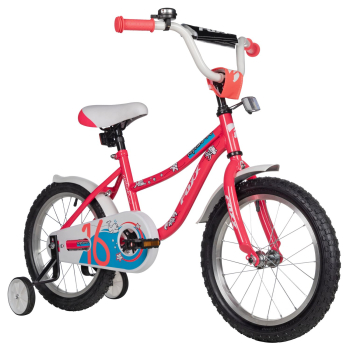 Велосипед, предназначенный для детей в возрасте от двух до четырех лет, без переключения передач. Технические особенности: прочная стальная рама (прямой рулевой стакан, горизонтальные дропауты), жесткая стальная вилка, одинарные алюминиевые обода (под ниппель AV), ножные педальные тормоза, полная защита цепи, крылья, съемные боковые колеса, мягкая накладка на руле, звонок, катафоты. Подходит для обучения и прогулочного катания в городских условиях. Диаметр колес - 16 дюймов. Вес - 9,5 кг.
