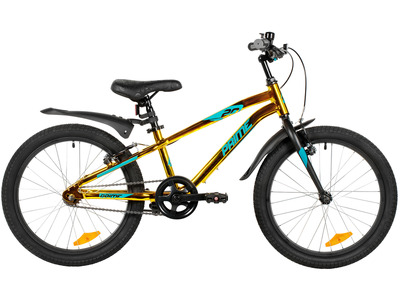 Велосипед, предназначенный для детей в возрасте от пяти до девяти лет, без переключения передач. Технические особенности: алюминиевая рама (прямой рулевой стакан, кареточный стакан BSA), жесткая стальная вилка, одинарные алюминиевые обода (под ниппель AV), надежные ободные тормоза Sparkle V-brake (стальные рычаги), защита цепи, пластиковые крылья, подножка, звонок, катафоты. Подходит для обучения и прогулочного катания в городских условиях. Диаметр колес - 20 дюймов. Вес - 10,2 кг.
