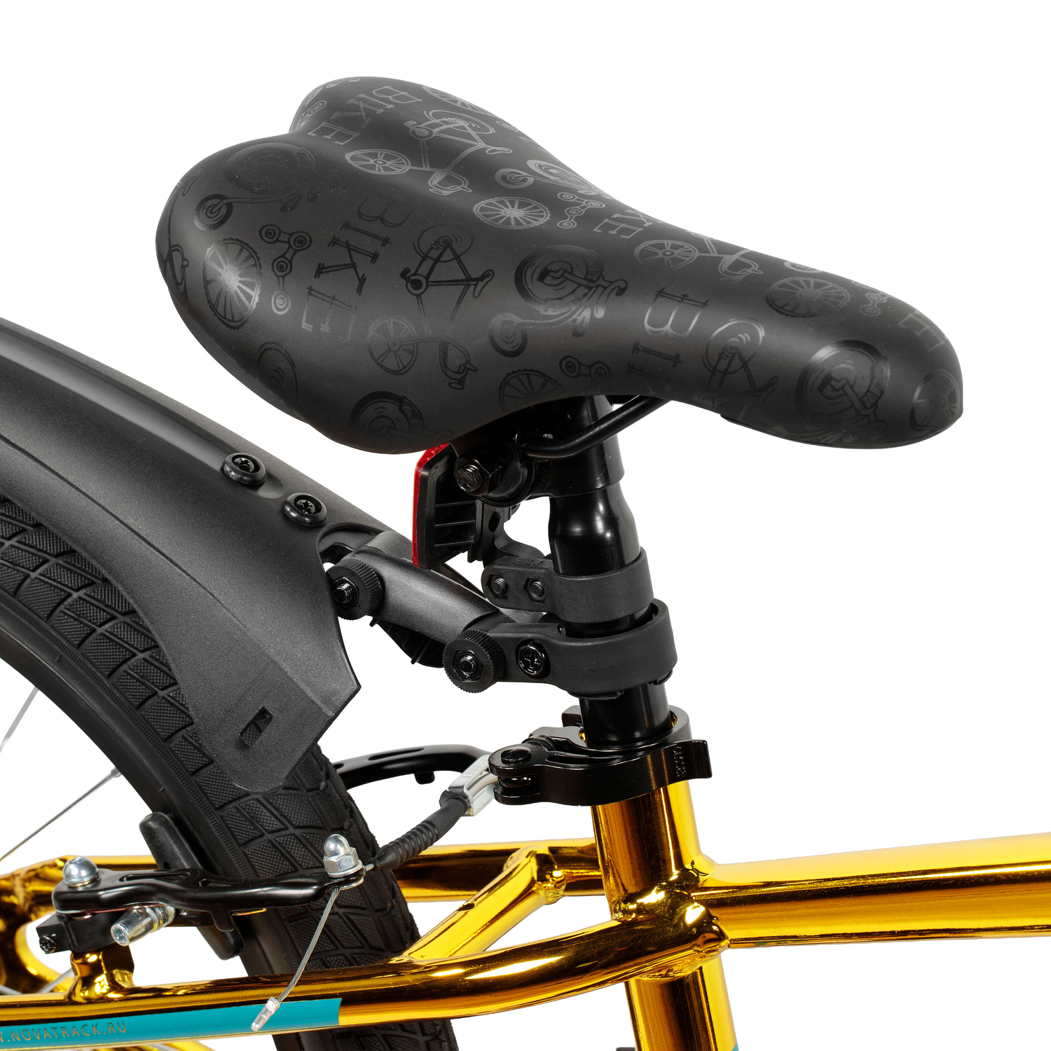 Велосипед, предназначенный для детей в возрасте от пяти до девяти лет, без переключения передач. Технические особенности: алюминиевая рама (прямой рулевой стакан, кареточный стакан BSA), жесткая стальная вилка, одинарные алюминиевые обода (под ниппель AV), надежные ободные тормоза Sparkle V-brake (стальные рычаги), защита цепи, пластиковые крылья, подножка, звонок, катафоты. Подходит для обучения и прогулочного катания в городских условиях. Диаметр колес - 20 дюймов. Вес - 10,2 кг.