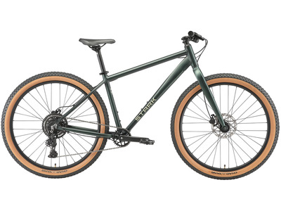 Горный велосипед с широкими покрышками и навесным оборудованием Shimano, 9 скоростей. Технические особенности: алюминиевая рама (сплав AL-6061 T4-T6, частично скрытая проводка, прямой рулевой стакан, кареточный стакан BSA, съемный петух), жесткая алюминиевая вилка Grinz Hortus RA (крепление калипера IS), двойные алюминиевые обода Stars R30-2C (под ниппель AV), дисковые гидравлические тормоза Tektro HD-M275 (роторы 180/160 мм). Подходит для прогулочной езды по различным дорогам и пересеченной местности. Диаметр колес - 29 дюймов. Вес - 14,7 кг.