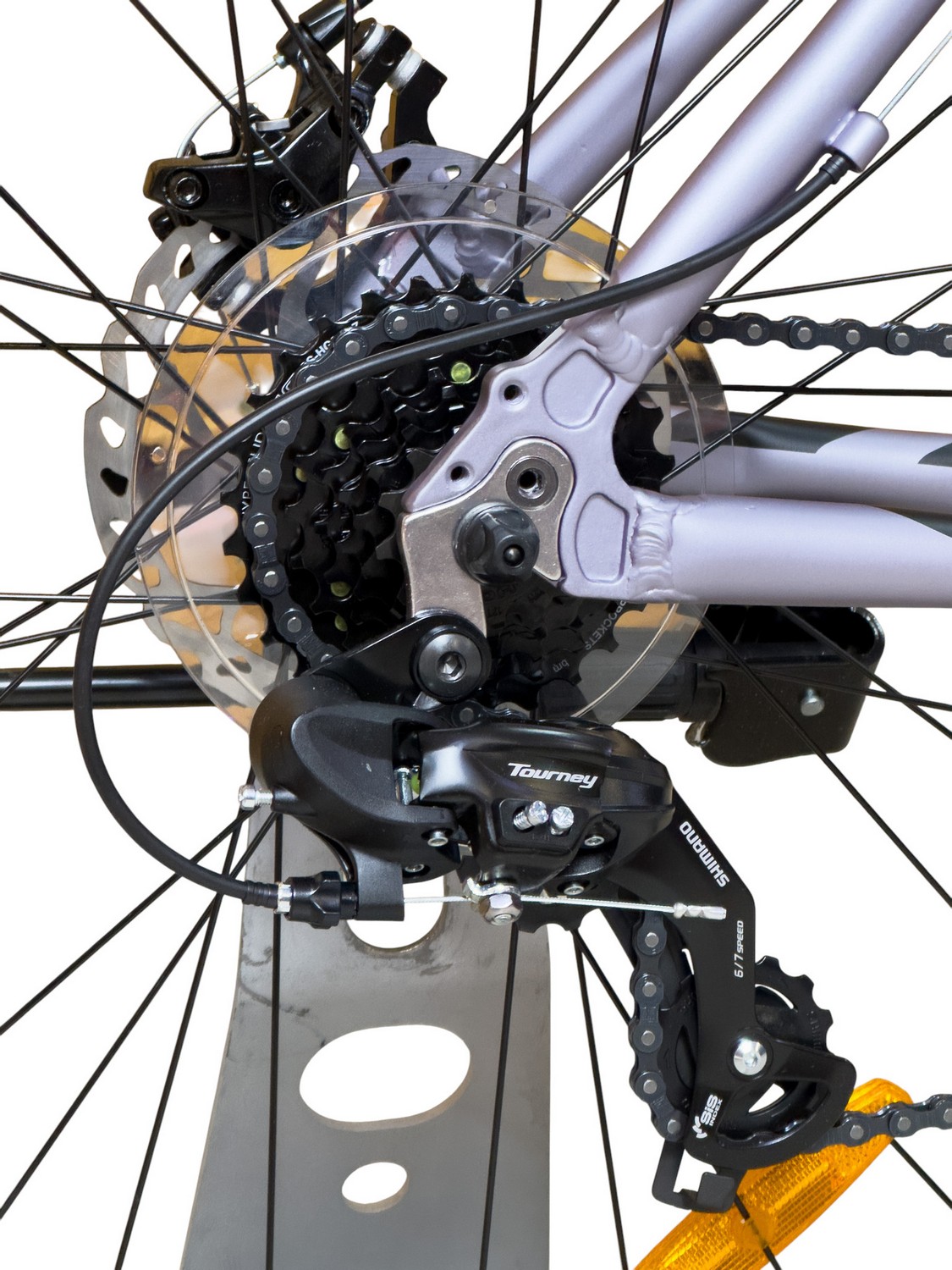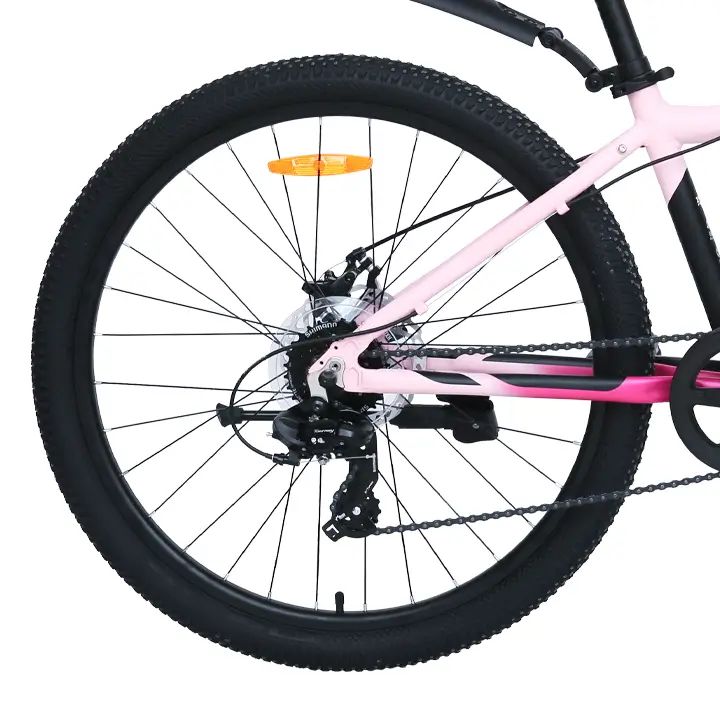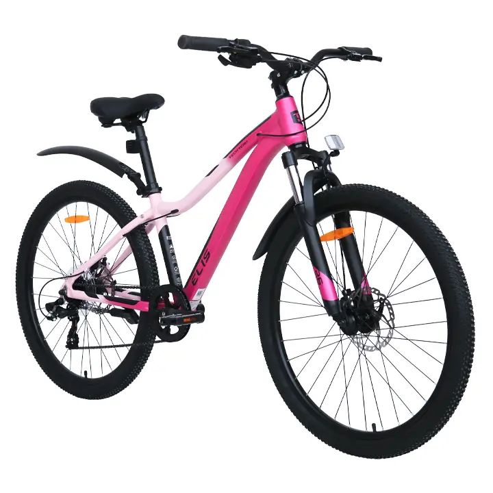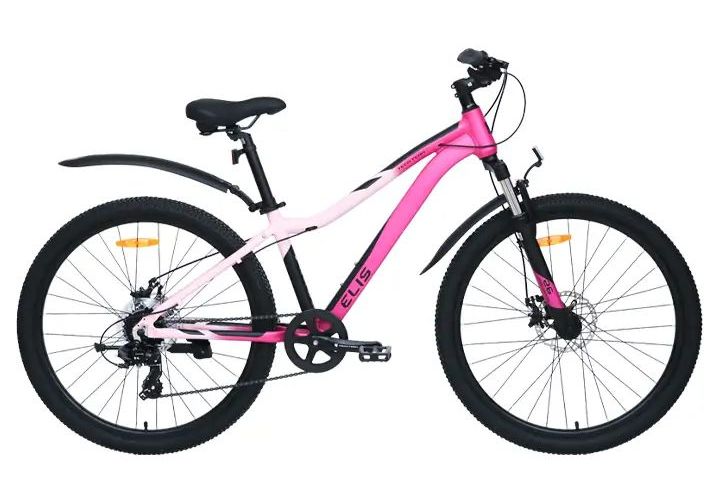 Подростковый велосипед для девочек с оборудованием начального класса Shimano/Microshift, 7 скоростей. Технические особенности: алюминиевая рама (частично скрытая проводка, прямой рулевой стакан, кареточный стакан BSA, съемный петух, крепление калипера IS), амортизационная вилка (пружинно-эластомерная, крепление калипера IS), двойные алюминиевые обода (под ниппель AV), дисковые механические тормоза (роторы 160/160 мм), защита цепи, пластиковые крылья, катафоты, подножка. Подходит для прогулочного катания по различным дорогам и пересеченной местности. Диаметр колес - 26 дюймов. Вес - 14,5 кг.
