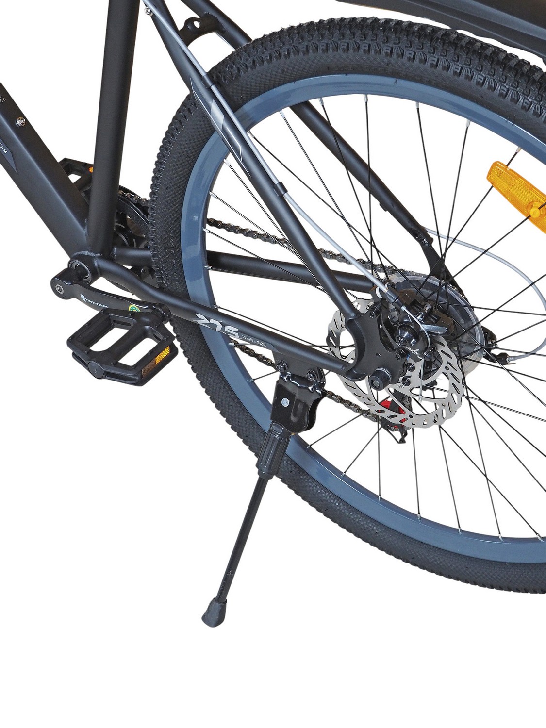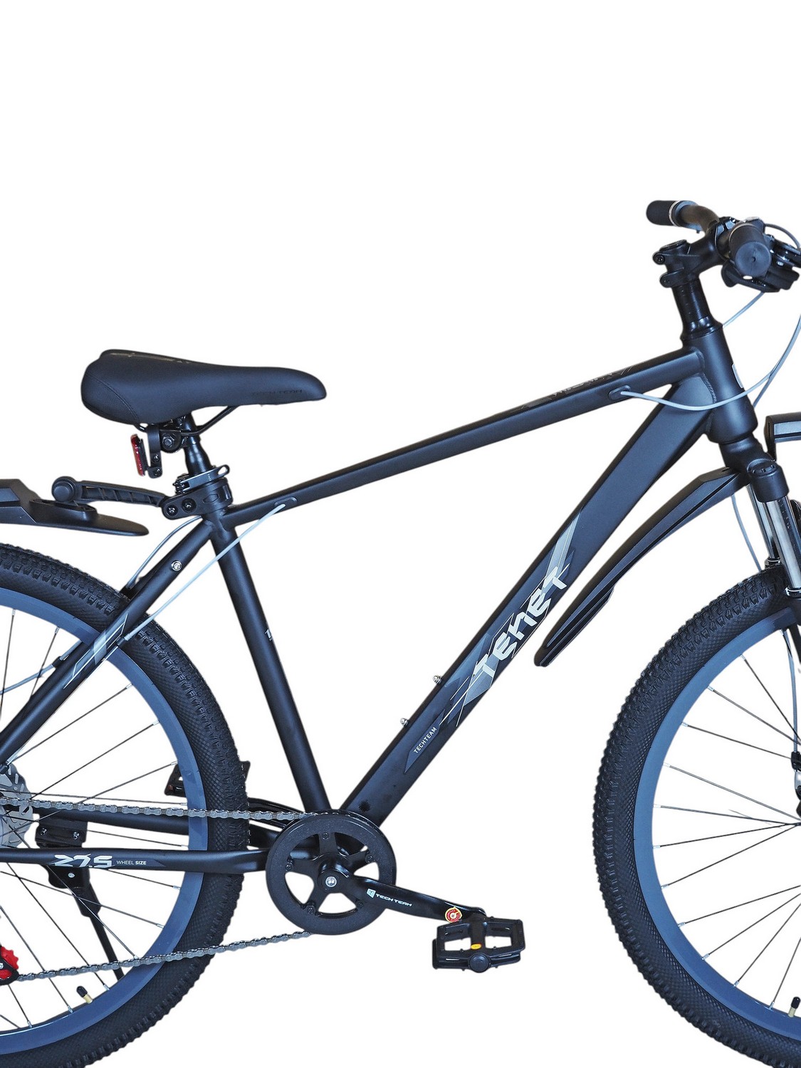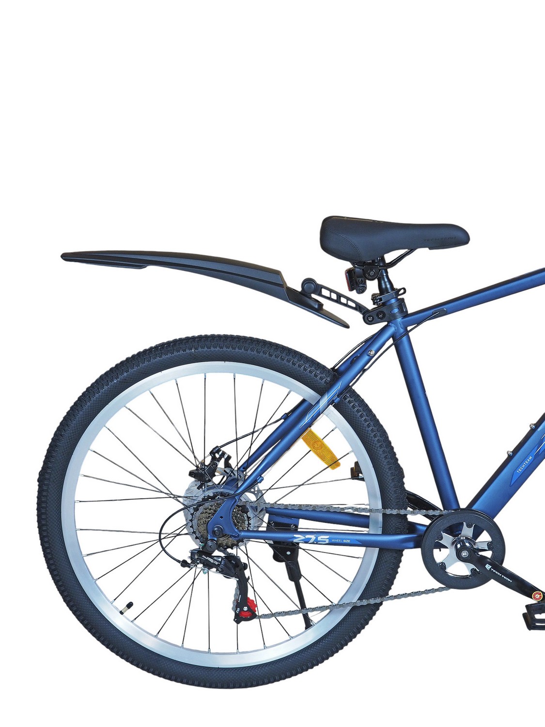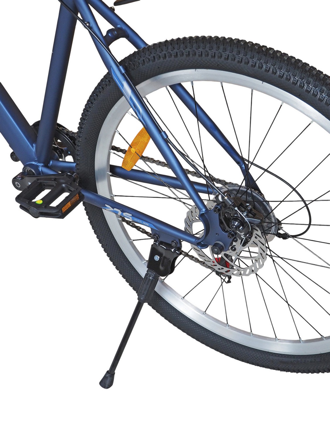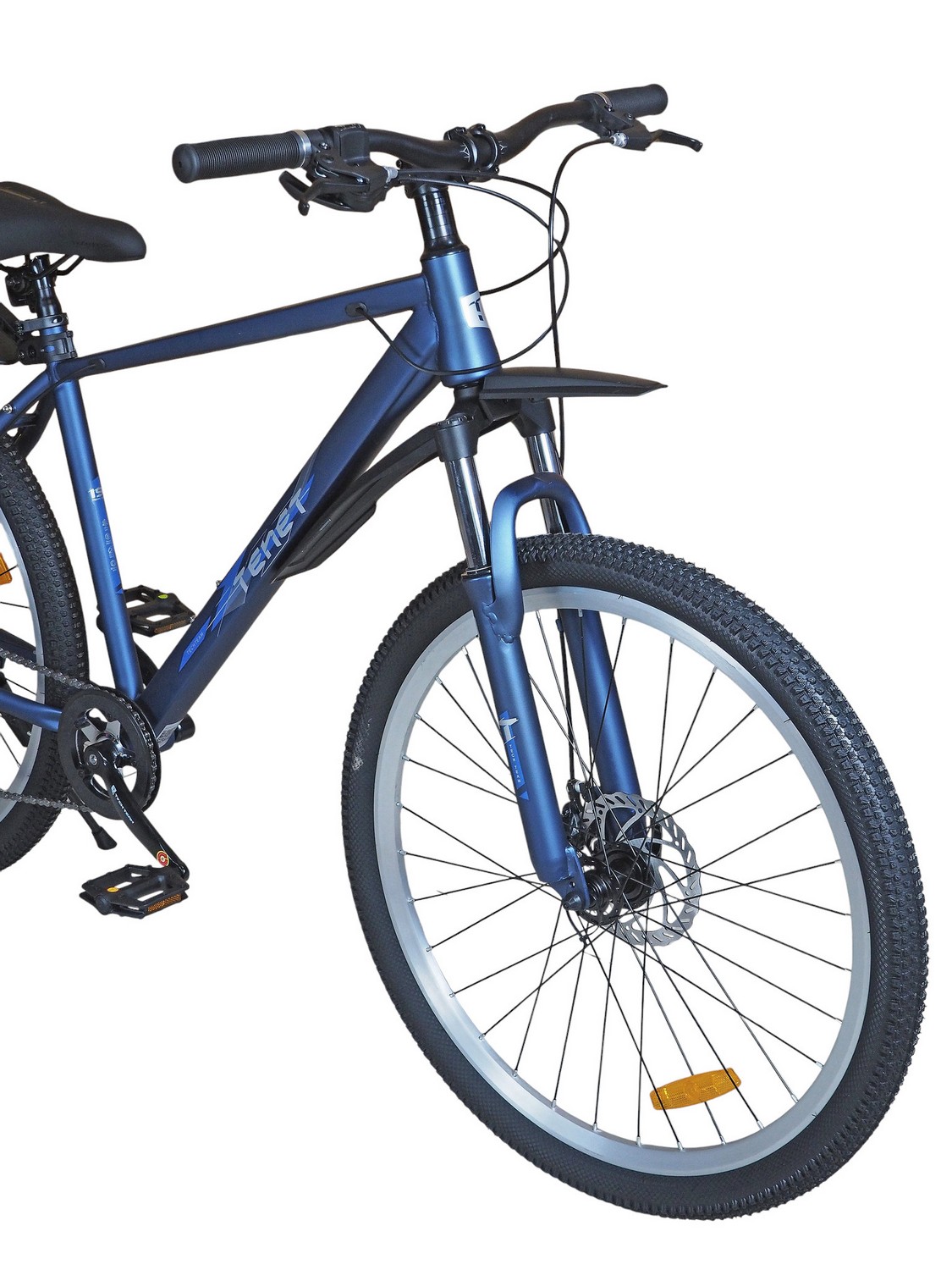 Горный велосипед начального уровня с оборудованием начального класса Shimano/Microshift, 7 скоростей. Технические особенности: прочная стальная рама (частично скрытая проводка тросов, прямой рулевой стакан, кареточный стакан BSA, интегрированный петух, крепление калипера IS), амортизационная вилка (пружинно-эластомерная, крепление калипера IS), двойные алюминиевые обода (под ниппель AV), дисковые механические тормоза (роторы 160/160 мм), защита цепи, катафоты, пластиковые крылья, подножка. Подходит для прогулочной езды по шоссе и ровным проселочным дорогам. Диаметр колес - 27,5 дюймов. Вес - 17,5 кг.