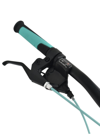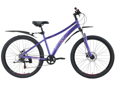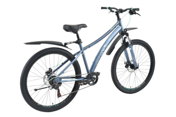 Женский спортивный велосипед начального уровня с навесным оборудованием Shimano/Microshift, 7 скоростей. Технические особенности: прочная стальная рама (частично скрытая проводка тросов, прямой рулевой стакан, кареточный стакан BSA, интегрированный петух, крепление калипера IS), амортизационная вилка (пружинно-эластомерная, ход 80 мм, крепление калипера IS), двойные алюминиевые обода (под ниппель AV), дисковые механические тормоза (роторы 160/160 мм), защита цепи, катафоты, пластиковые крылья, подножка. Подходит для прогулочной езды по шоссе и ровным проселочным дорогам. Диаметр колес - 27,5 дюймов. Вес - 17,5 кг.
