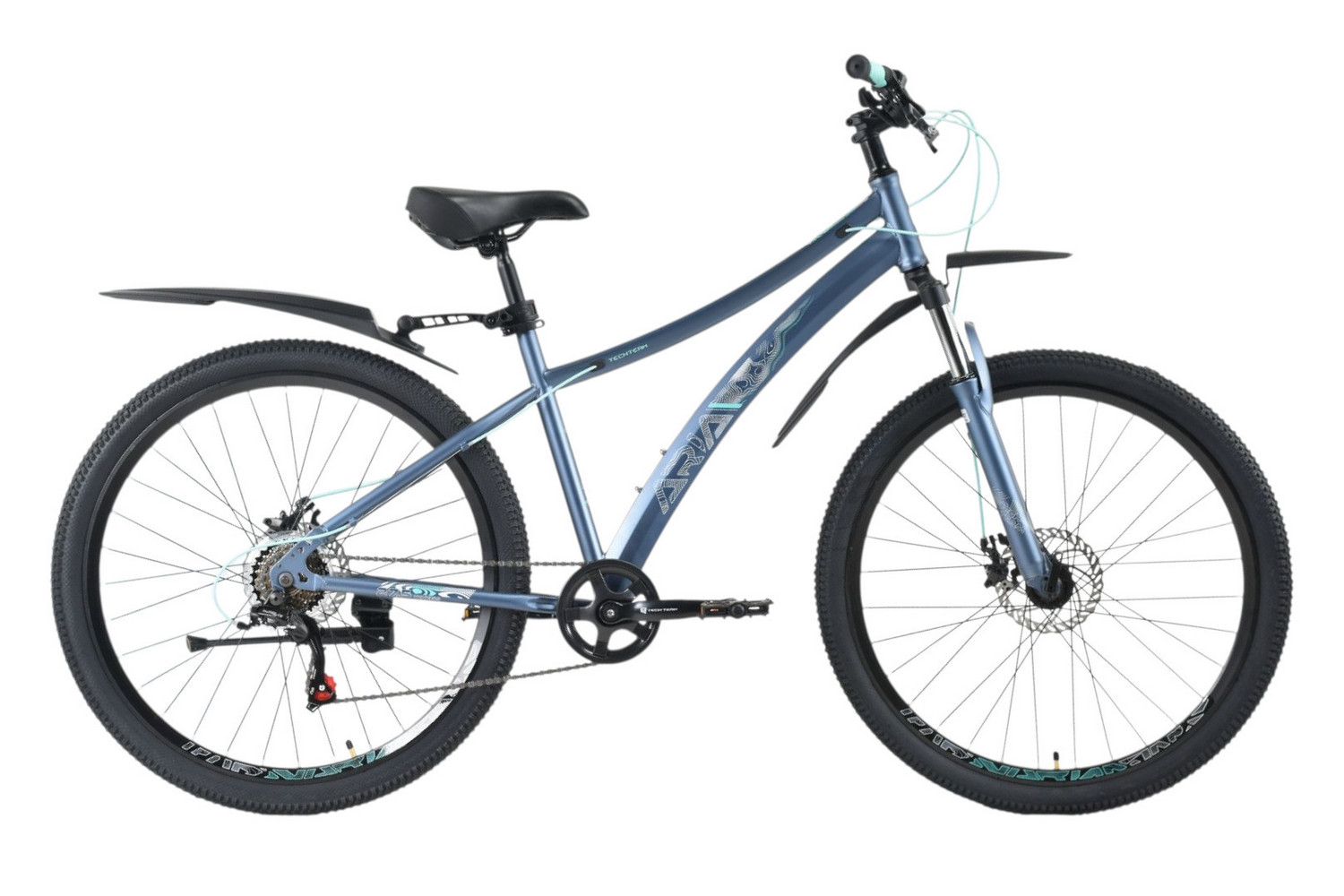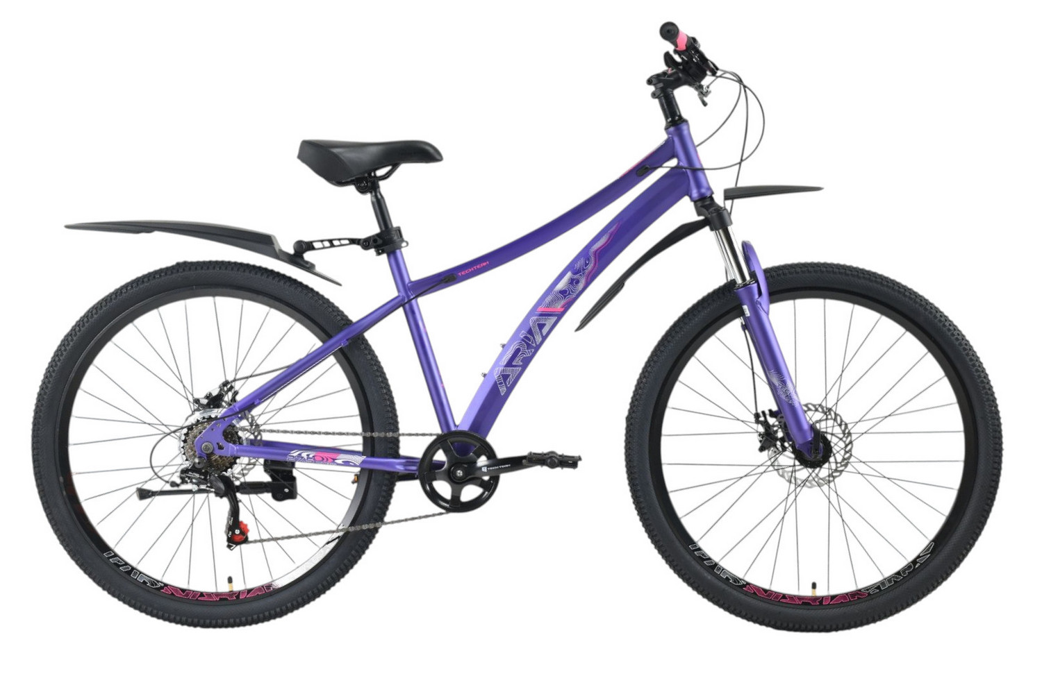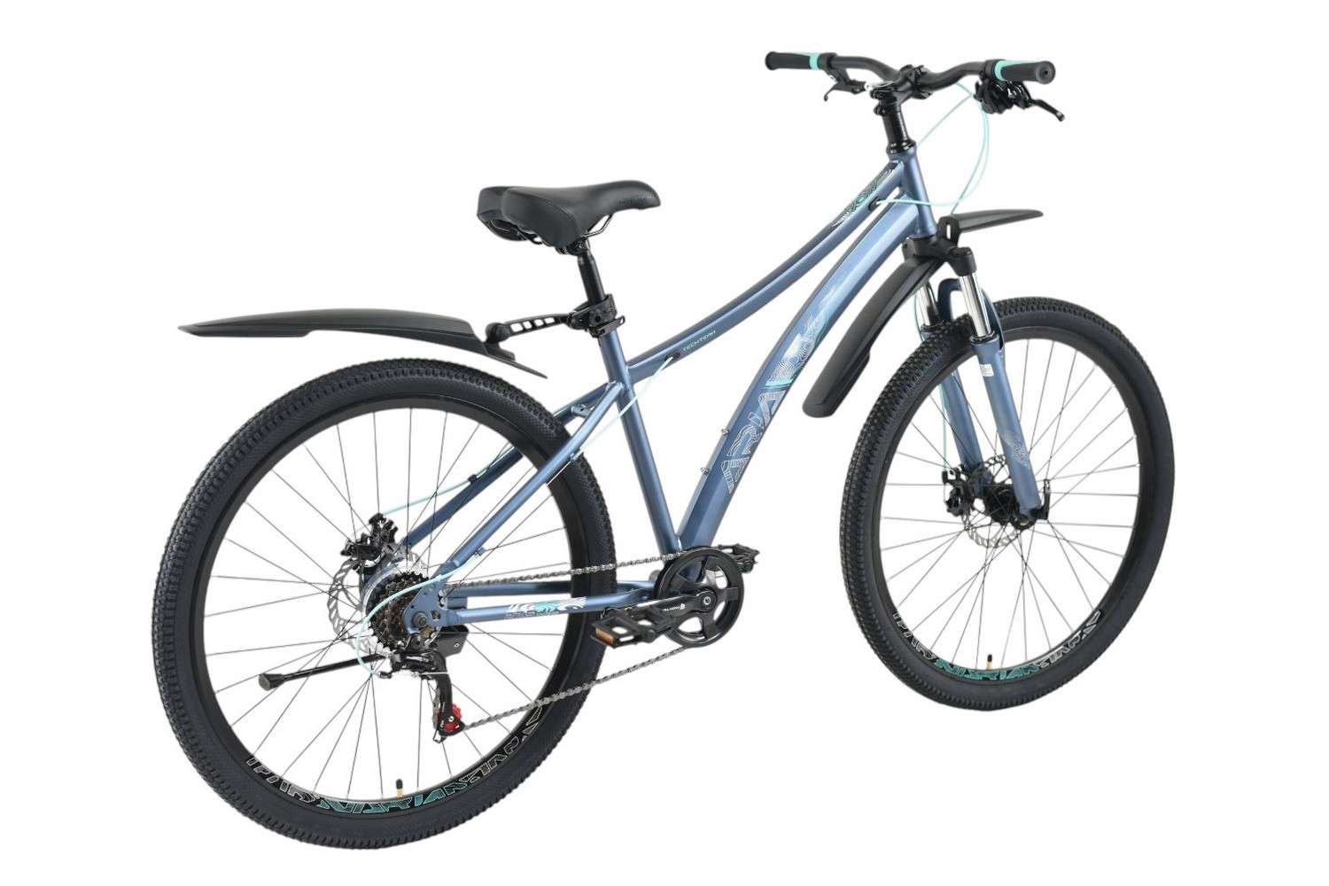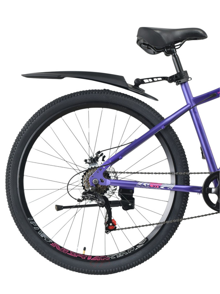 Женский спортивный велосипед начального уровня с навесным оборудованием Shimano/Microshift, 7 скоростей. Технические особенности: прочная стальная рама (частично скрытая проводка тросов, прямой рулевой стакан, кареточный стакан BSA, интегрированный петух, крепление калипера IS), амортизационная вилка (пружинно-эластомерная, ход 80 мм, крепление калипера IS), двойные алюминиевые обода (под ниппель AV), дисковые механические тормоза (роторы 160/160 мм), защита цепи, катафоты, пластиковые крылья, подножка. Подходит для прогулочной езды по шоссе и ровным проселочным дорогам. Диаметр колес - 27,5 дюймов. Вес - 17,5 кг.