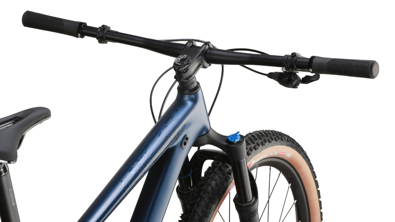 - легкая алюминиевая рама (сплав 7005, геометрия Race, гидроформинг, тройной баттинг, скрытая проводка, сглаженные сварные швы, конический рулевой стакан, кареточный стакан BB-PF92, сквозная ось Boost 12x148 мм, дропауты UDH, совместимость с дропперами, крепление калипера Post Mount),