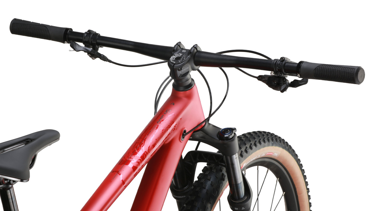 - легкая алюминиевая рама (сплав 7005, геометрия Downcountry, гидроформинг, тройной баттинг, скрытая проводка, сглаженные сварные швы, конический рулевой стакан, кареточный стакан BB-PF92, сквозная ось Boost 12x148 мм, дропауты UDH, совместимость с дропперами, крепление калипера Post Mount),