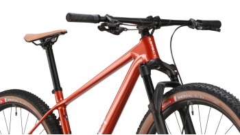 - карбоновая рама (премиальное углеволокно Carbon 1100 CNRP, геометрия Race, скрытая проводка, прямой рулевой стакан 1.5-1.5, кареточный стакан BB-PF92, сквозная ось Boost 12x148 мм, дропауты UDH, совместимость с дропперами, крепление калипера Post Mount),