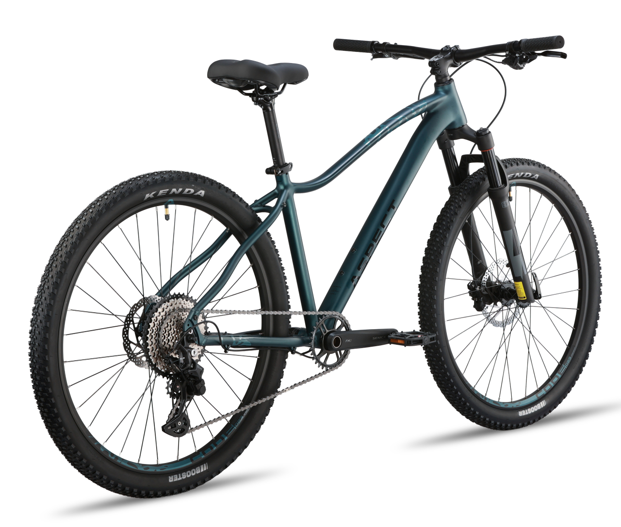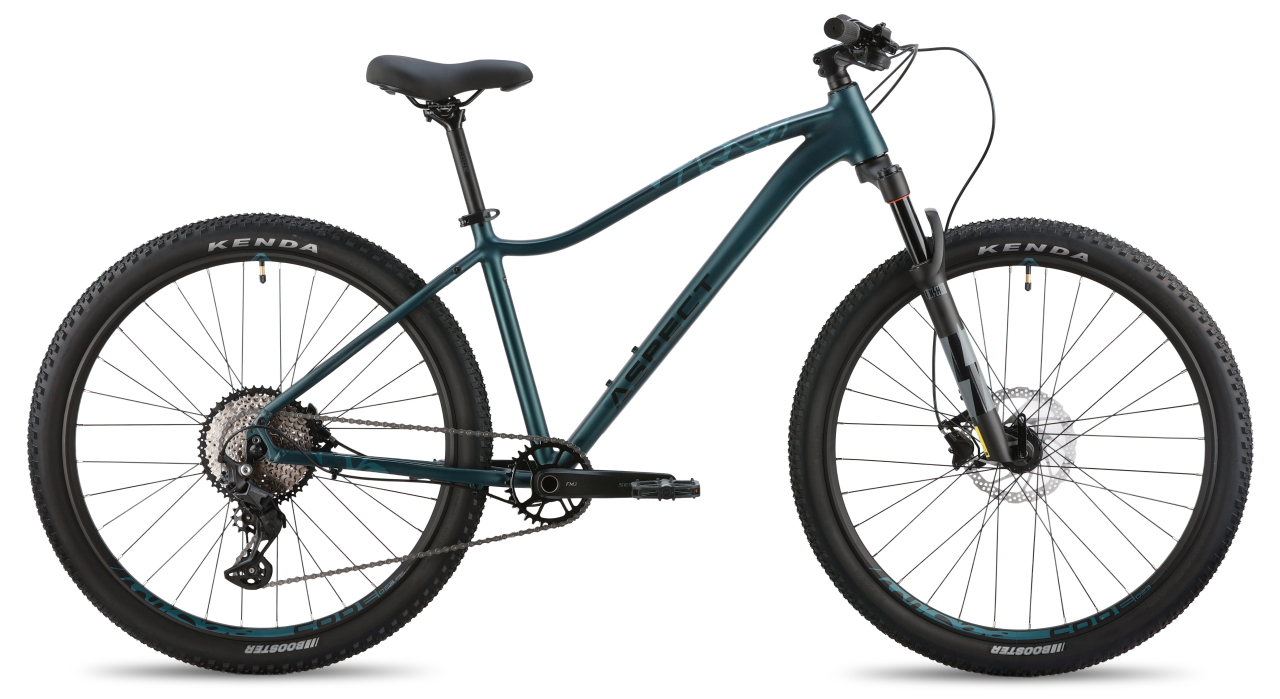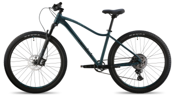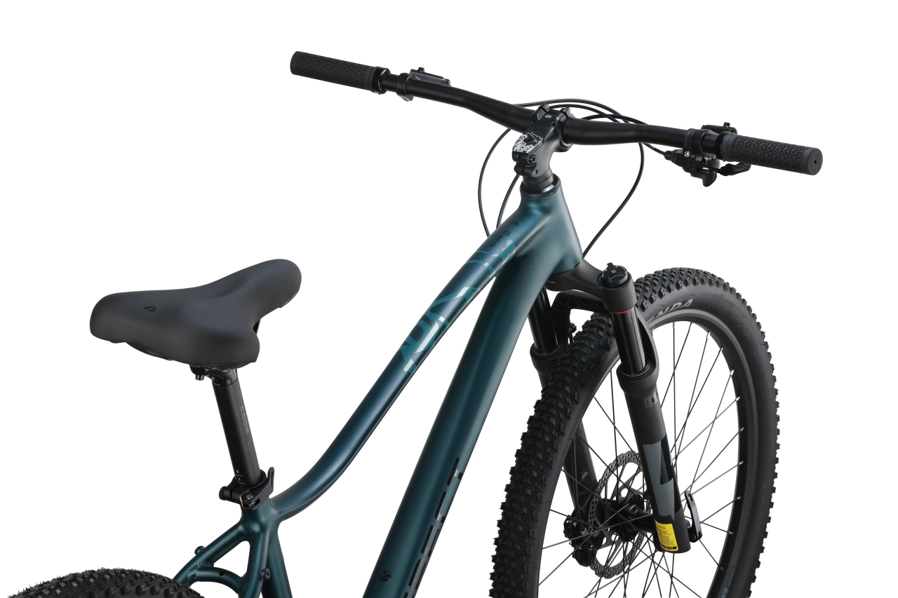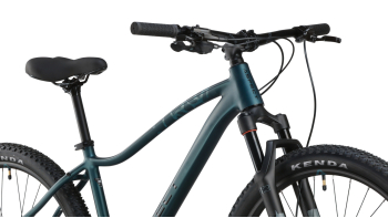 Женский горный велосипед с оборудованием предпрофессионального класса Shimano, 10 скоростей. Технические особенности: легкая алюминиевая рама (сплав 6061, женская геометрия, гидроформинг, двойной баттинг, скрытая прокладка тросов, сглаженные швы, кареточный стакан BSA, конический рулевой стакан, крепление калипера PM), амортизационная вилка Exsho Castos (воздушно-масляная, гидравлическая блокировка, ход 100 мм, крепление калипера PM, анодированные алюминиевые ноги 32 мм), двойные алюминиевые обода Code D23 (под ниппель AV), дисковые гидравлические тормоза Shimano BR-MT200 (роторы 180/160 мм). Подходит для активной езды по различным дорогам и пересеченной местности. Диаметр колес - 27,5 дюймов. Вес - 13,9 кг.