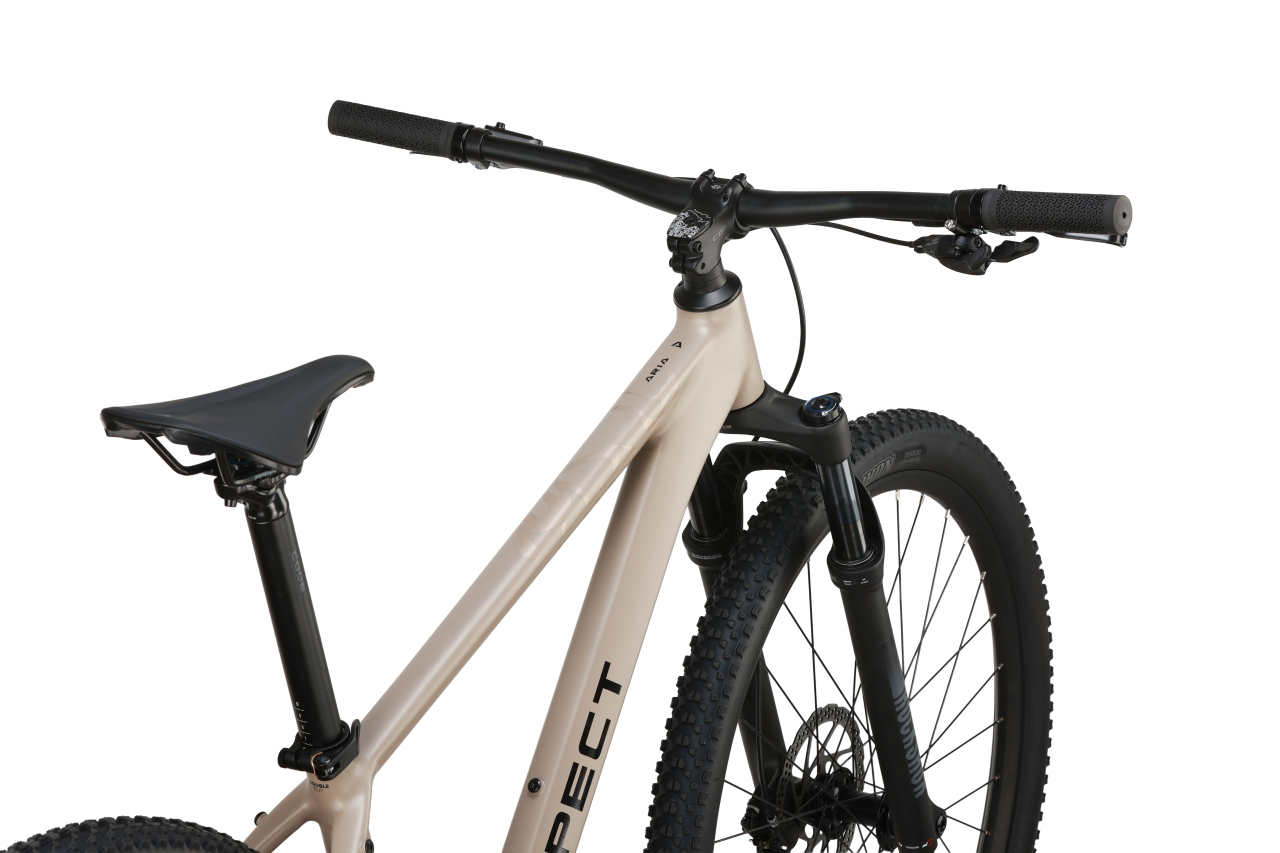 - легкая алюминиевая рама (сплав 6061, женская геометрия, гидроформинг, двойной баттинг, скрытая прокладка тросов, сглаженные швы, кареточный стакан BSA, прямой рулевой стакан 1.5-1.5, сквозная ось Boost 12х148 мм, крепление калипера PM),