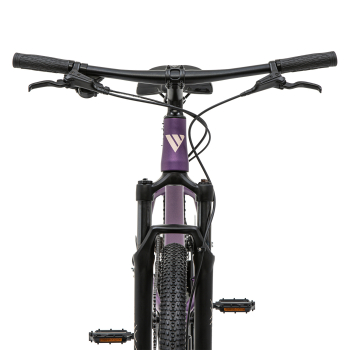 Женский горный велосипед с оборудованием начального любительского класса Shimano, 8 скоростей. Технические особенности: легкая алюминиевая рама (сплав 6061, частично скрытая проводка, конический рулевой стакан, кареточный стакан BSA, съемный петух, крепление калипера PM), амортизационная вилка 2ROXX 362 MLO (пружинно-эластомерная, ход 110 мм, механическая блокировка MLO, регулировка преднагрузки, покрытие ног QPQ, крепление калипера PM), двойные алюминиевые обода (под ниппель AV), дисковые гидравлические тормоза Tektro TKD176 (роторы 160/160 мм). Подходит для активной езды по различным дорогам и пересеченной местности. Диаметр колес - 29 дюймов. Вес - 14,6 кг.