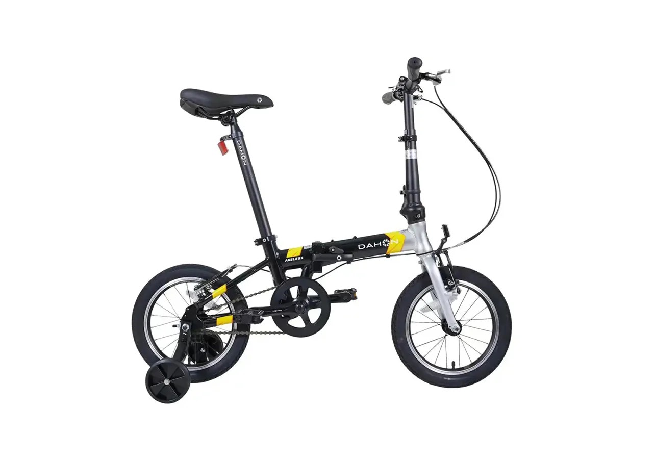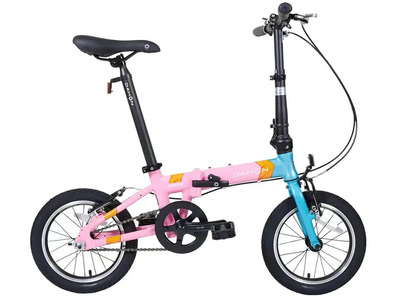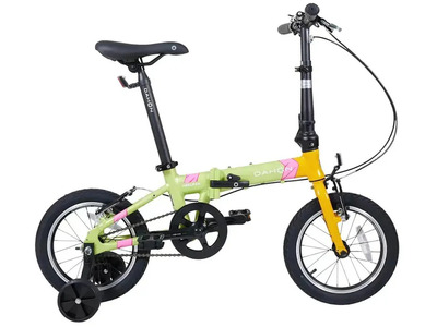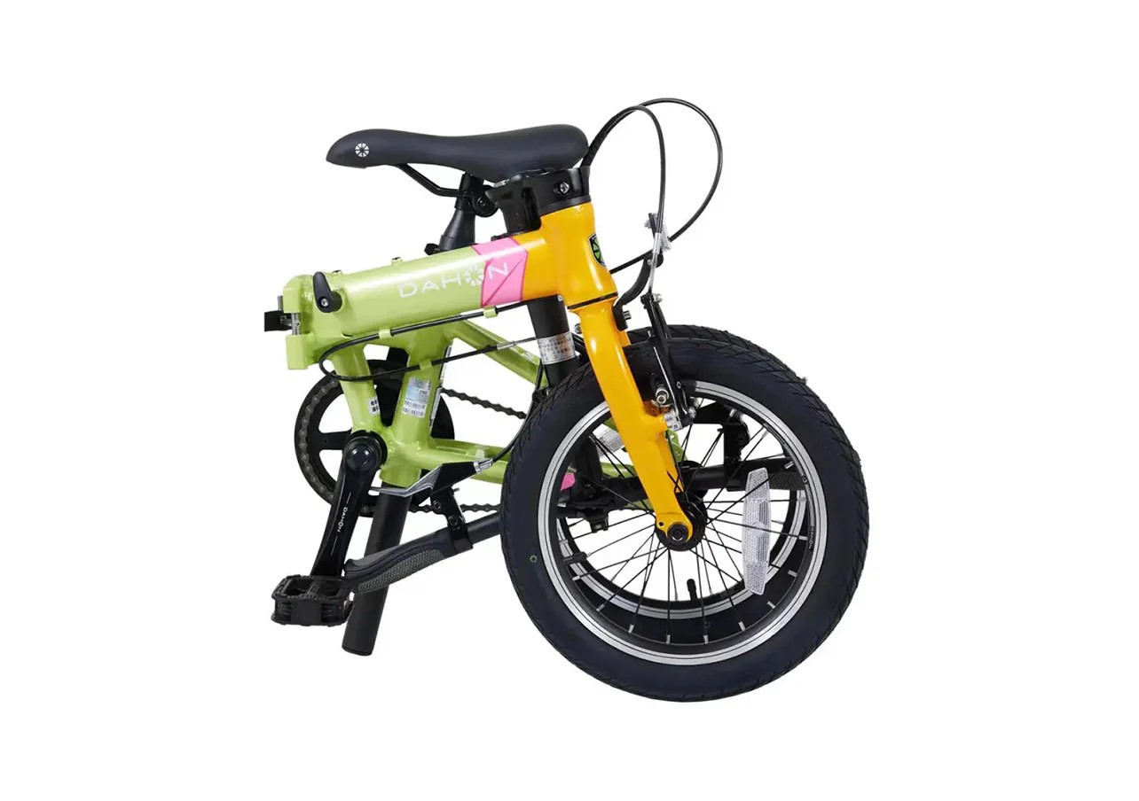 Складной велосипед для детей возрастом от трех до шести лет, без переключения передач. Технические особенности: складная алюминиевая рама (открытая проводка, прямой рулевой стакан, горизонтальные дропауты), жесткая стальная вилка (крепление под V-brake), двойные алюминиевые обода Dahon DRX16 double wall (под ниппель AV), надежные ободные тормоза Dahon WB-984DG V-brake (алюминиевые рычаги), катафоты, звонок. Подходит для обучения и прогулочного катания в городских условиях. Диаметр колес - 14 дюймов. Вес - 11,54 кг.