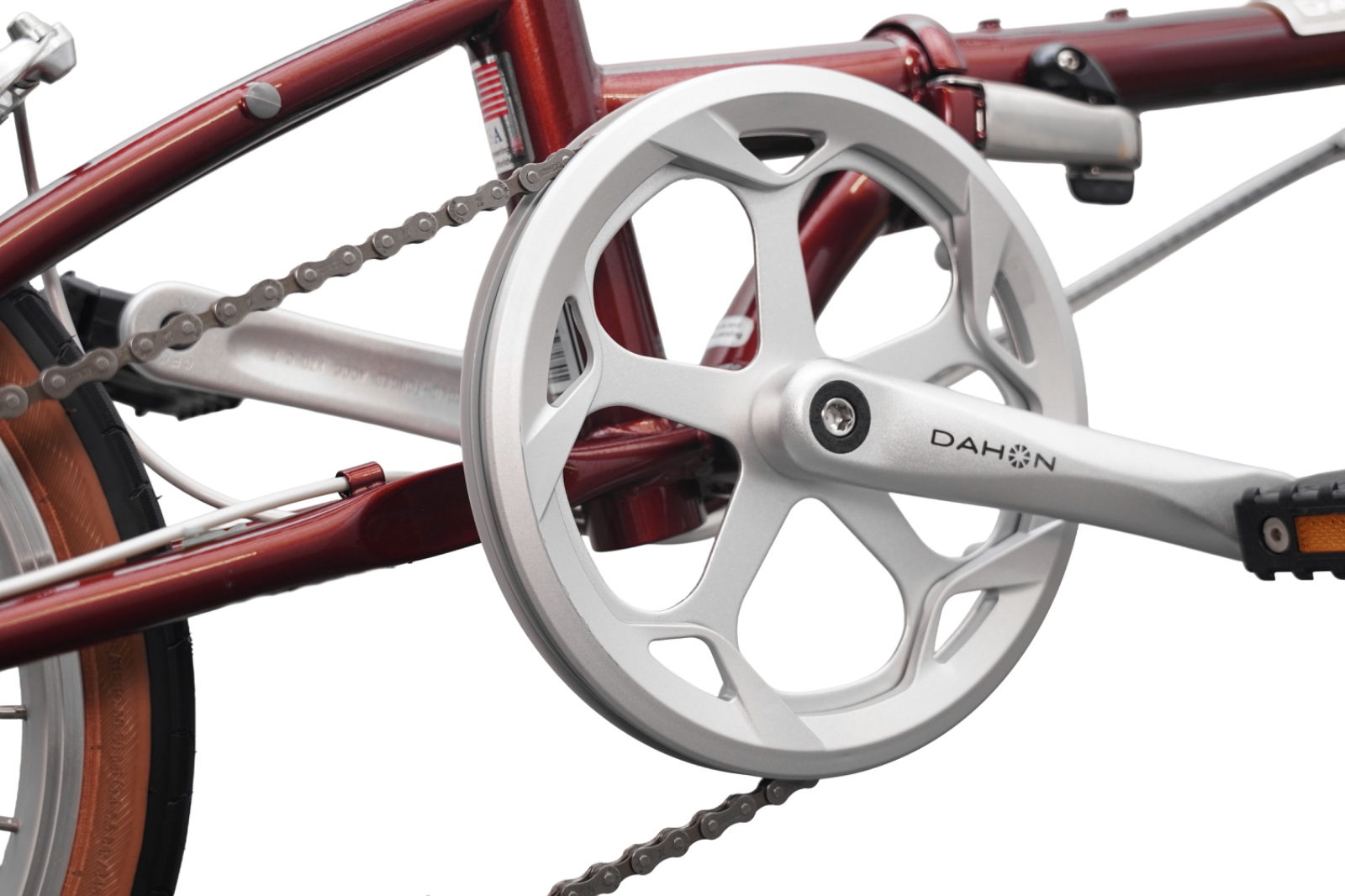 Компактный складной велосипед с оборудованием начального класса Shimano, 7 скоростей. Технические особенности: складная хромолевая рама (открытая проводка, прямой рулевой стакан, интегрированный петух), жесткая стальная вилка (крепление под V-brake), двойные алюминиевые обода Dahon P-7N3S (под ниппель AV), надежные ободные тормоза Winzip WB-984DG V-brake (алюминиевые рычаги), защита цепи, катафоты, подножка. Подходит для прогулочного катания в городских условиях. Диаметр колес - 16 дюймов. Вес - 11,62 кг.