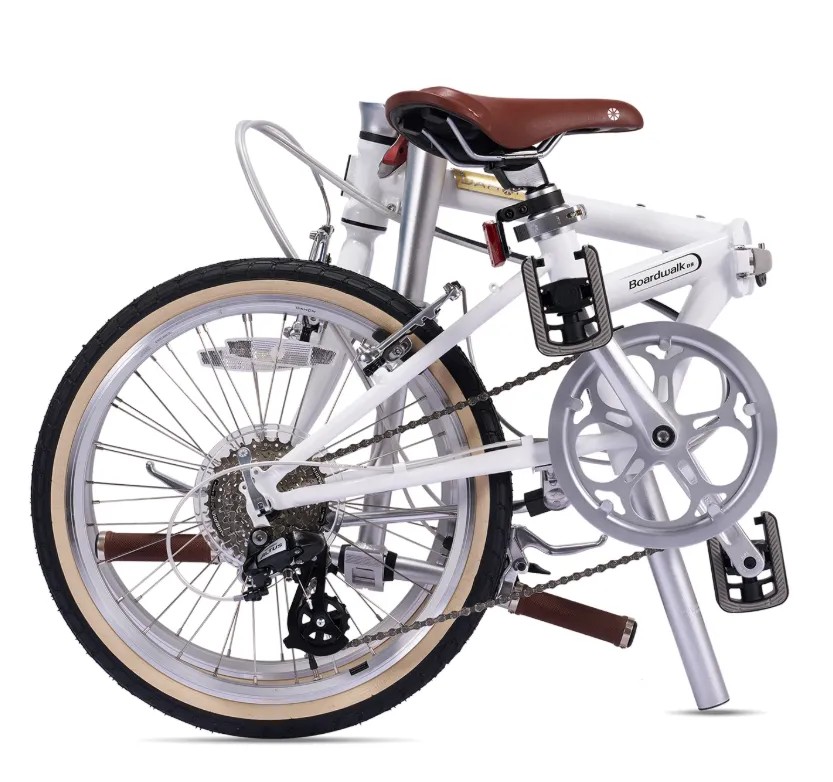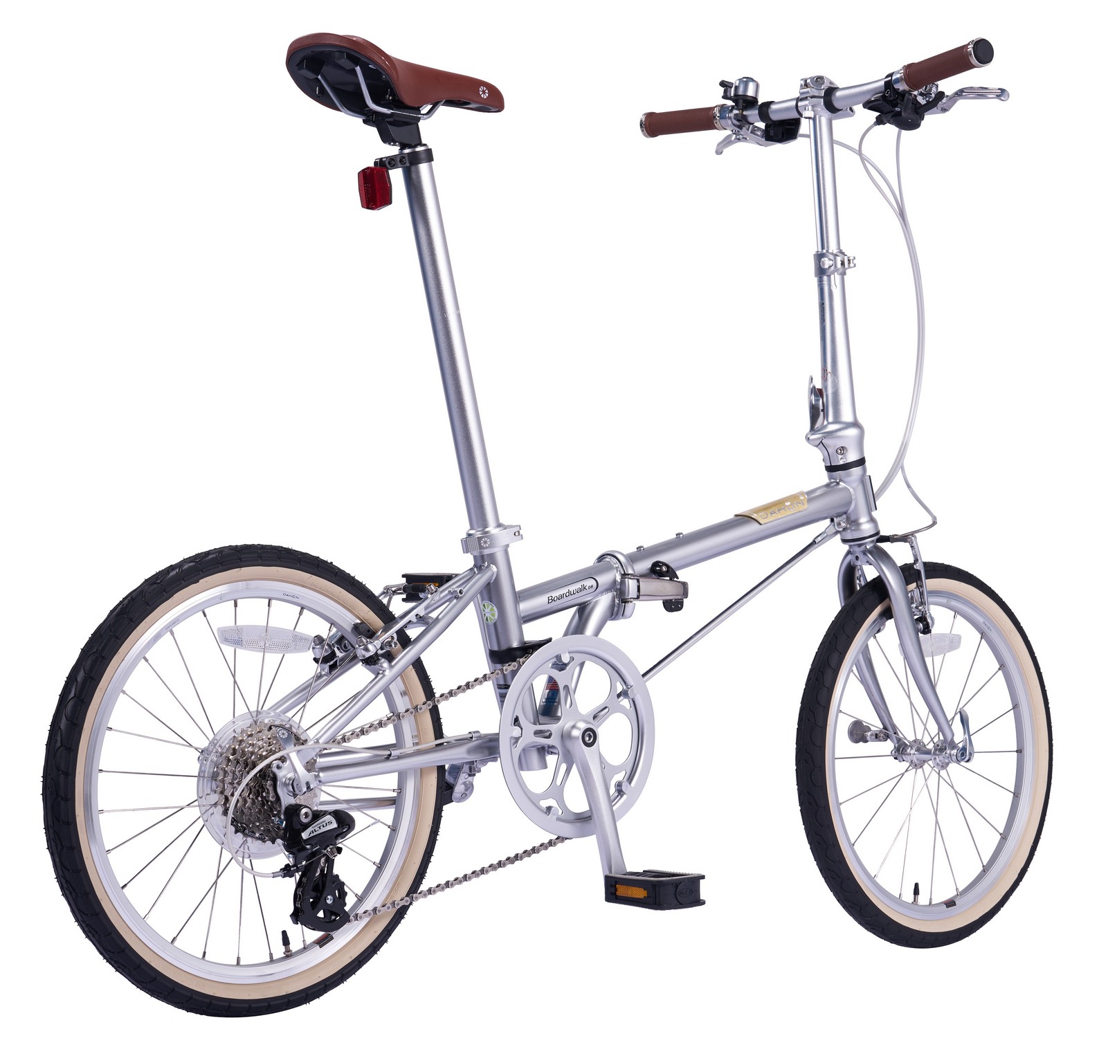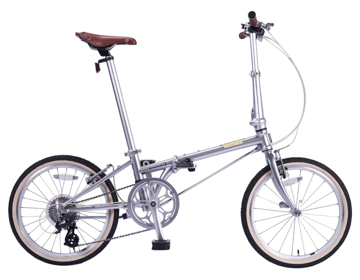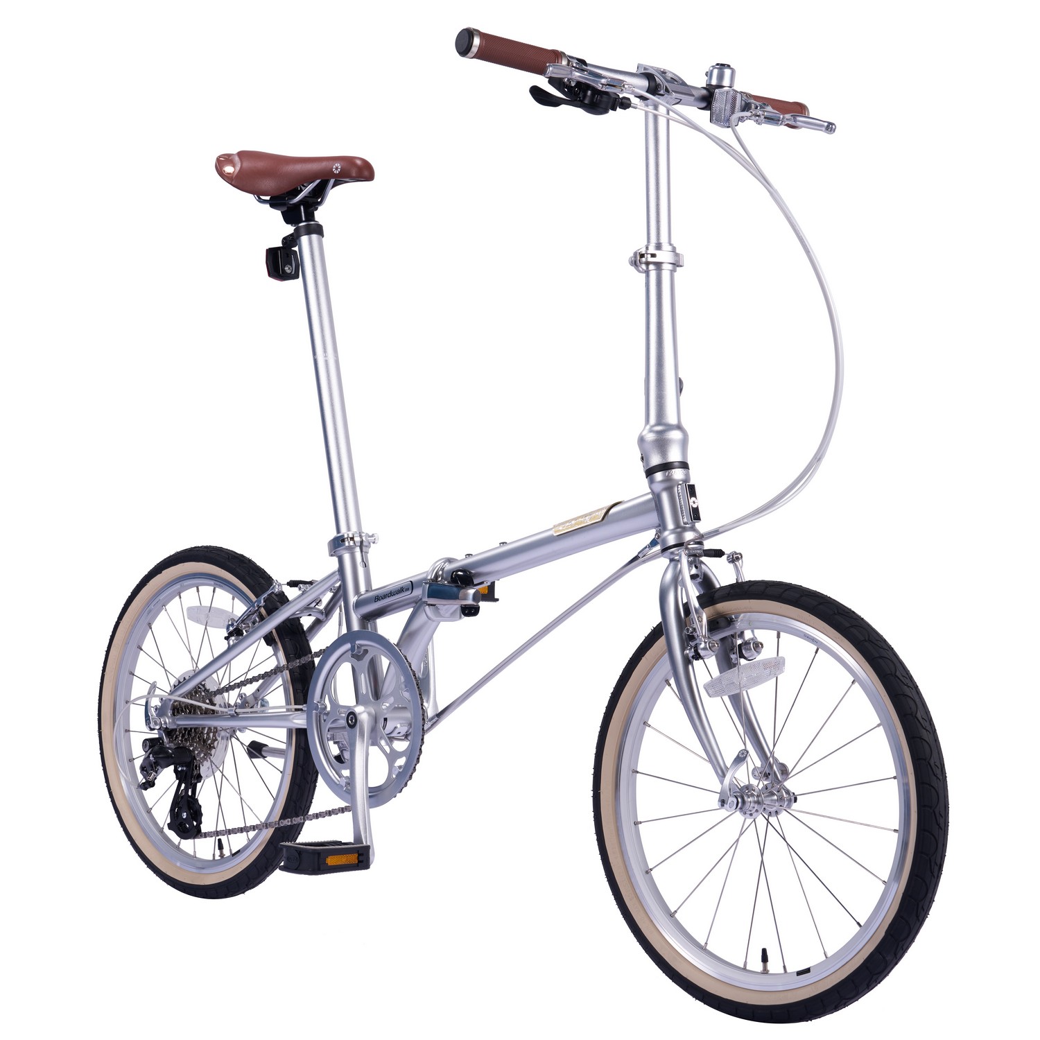 Прогулочный складной велосипед с оборудованием начального любительского класса Shimano, 8 скоростей. Технические особенности: складная хромолевая рама (открытая проводка, прямой рулевой стакан, интегрированный петух), жесткая стальная вилка (крепление под V-brake), двойные алюминиевые обода (под ниппель Presta FV), надежные ободные тормоза V-brake (алюминиевые рычаги), защита цепи, катафоты, подножка. Подходит для прогулочного катания в городских условиях. Диаметр колес - 20 дюймов. Вес - 12,2 кг.