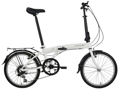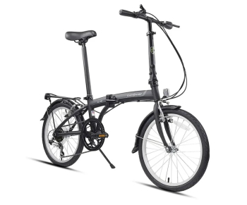 Прогулочный складной велосипед с оборудованием начального класса Shimano, 6 скоростей. Технические особенности: складная алюминиевая рама (открытая проводка, прямой рулевой стакан, интегрированный петух), жесткая стальная вилка (крепление под V-brake), двойные алюминиевые обода (под ниппель AV), надежные ободные тормоза V-Brake (алюминиевые рычаги), задний багажник, крылья с брызговиками, защита цепи, катафоты, подножка. Подходит для прогулочного катания в городских условиях. Диаметр колес - 20 дюймов. Вес - 13 кг.