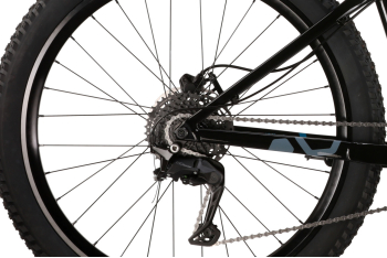- легкая алюминиевая рама (сплав 6061, геометрия Trail, двойной баттинг, конический рулевой стакан, постмаунт дропауты, внутренняя проводка, ЧПУ-обработка деталей, сквозная ось 148х12 мм),