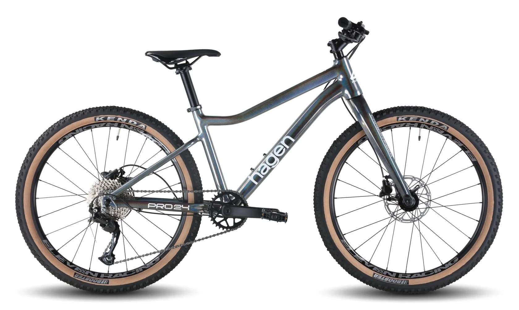 Велосипед, предназначенный для детей в возрасте от восьми до тринадцати лет, с оборудованием любительского класса Shimano, 9 скоростей. Подходит для прогулочного катания в городских условиях и по несложным маршрутам в лесу. Диаметр колес - 24 дюйма. Вес - 10,7 кг.