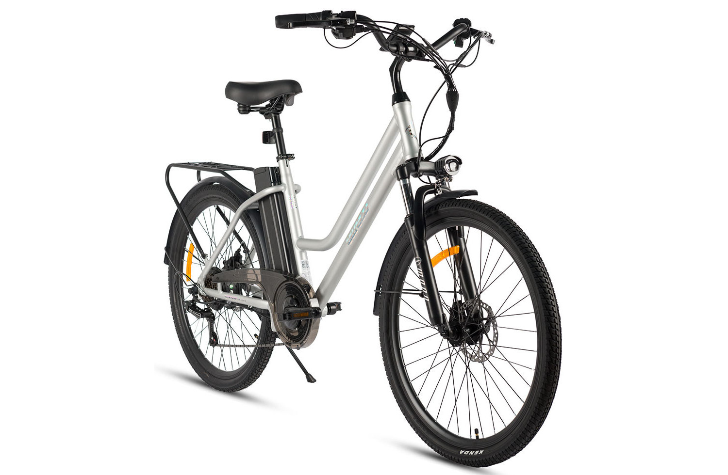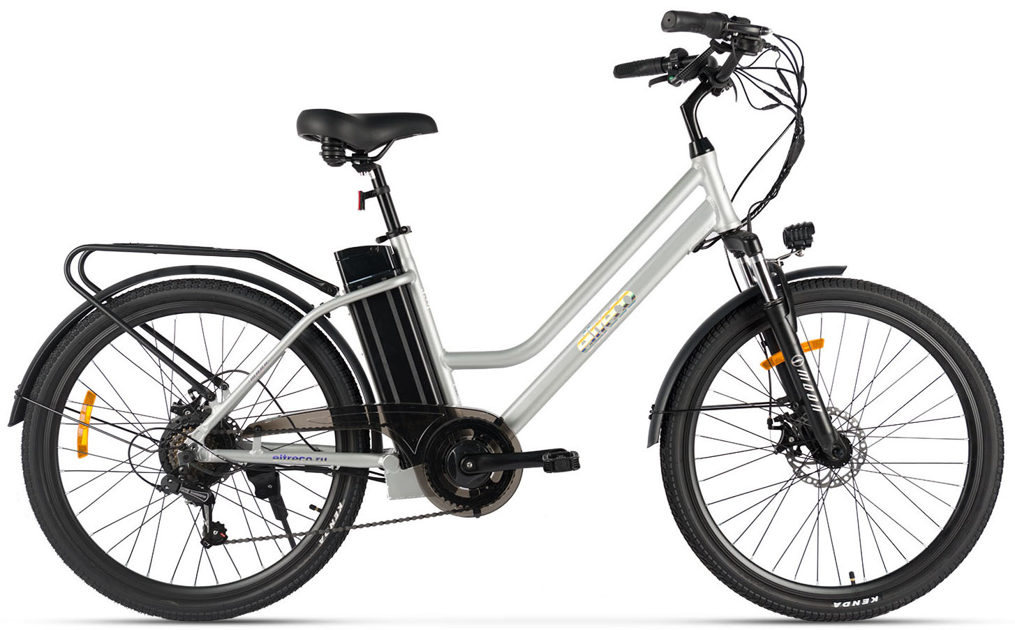 Комфортабельный электровелосипед с навесным оборудованием Shimano, 7 скоростей. Подходит для прогулочного катания в городских условиях и по несложным маршрутам в лесу. Пробег до 40 км на одной зарядке. Грузоподъемность - 110 кг. Время заряда батареи: 6-8 часов. Рекомендуемая температура эксплуатации: -10°C до +40°C. Диаметр колес - 26 дюймов. Вес - 22,3 кг.