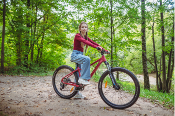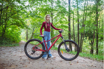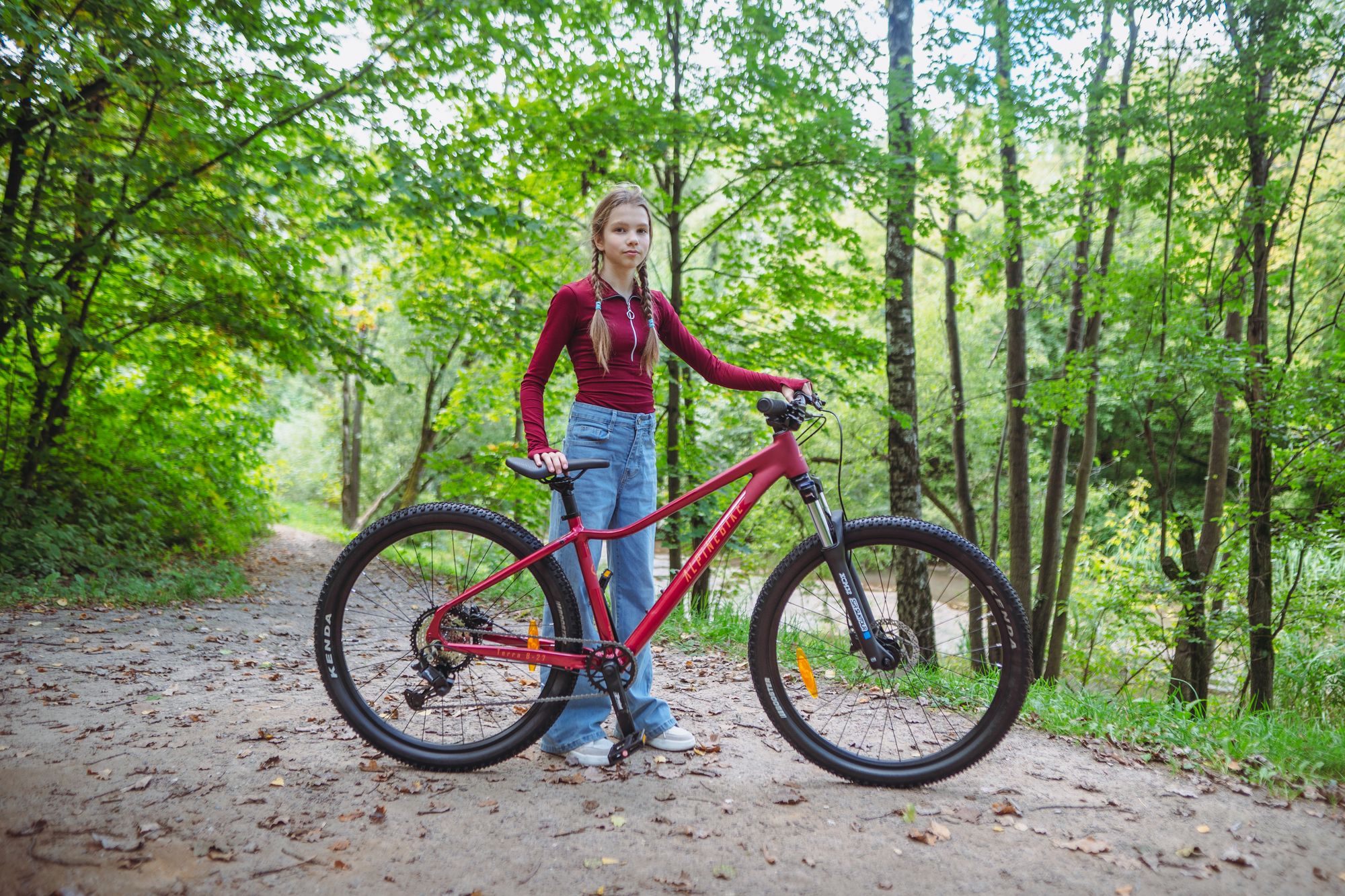 Женский горный велосипед с оборудованием любительского класса Shimano, 8 скоростей. Подходит для активной езды по различным дорогам и пересеченной местности. Диаметр колес - 27,5 дюймов. Вес - 14,9 кг.
