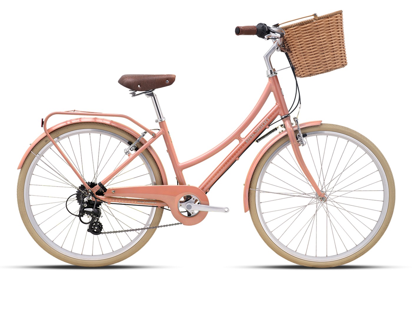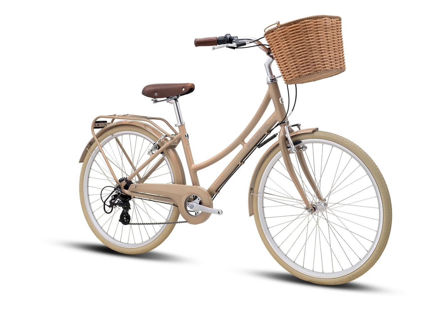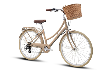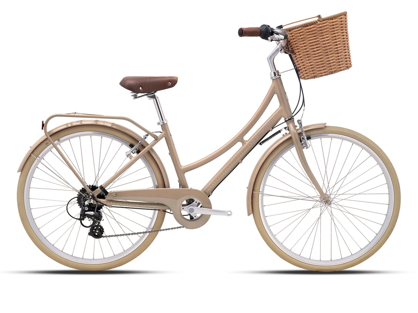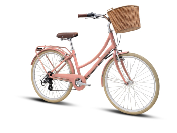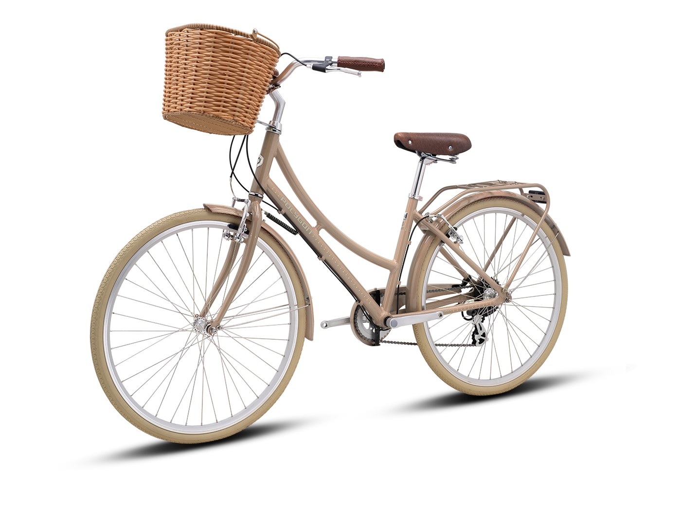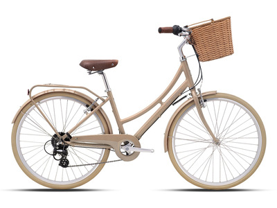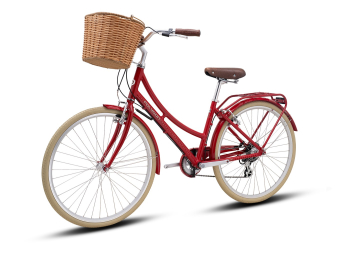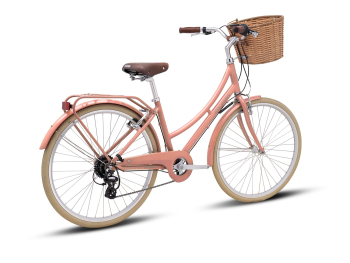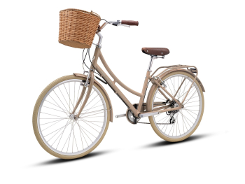Женский дорожный велосипед с навесным оборудованием Shimano, 8 скоростей. Технические особенности: алюминиевая рама AL6 Alloy Frame (комфортная прогулочная геометрия, открытая проводка, прямой рулевой стакан, кареточный стакан BSA, съемный петух), жесткая стальная вилка Hi-Ten Steel Rigid, двойные алюминиевые обода, надежные ободные тормоза V-Brake (алюминиевые рычаги), длинные крылья, защита цепи, багажник, комфортное седло, передняя корзина, защита заднего переключателя, катафоты. Подходит для прогулочного катания в городских условиях и по несложным маршрутам в лесу. Диаметр колес - 26 дюймов. Вес - 15 кг.