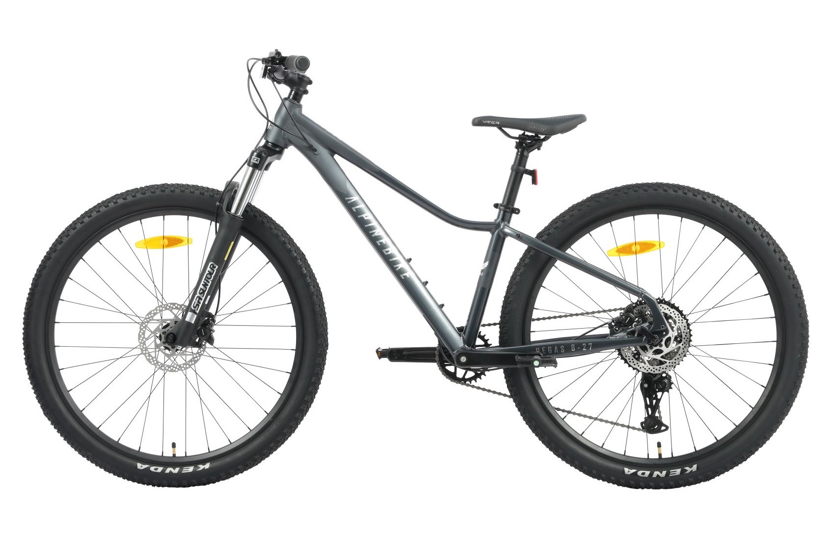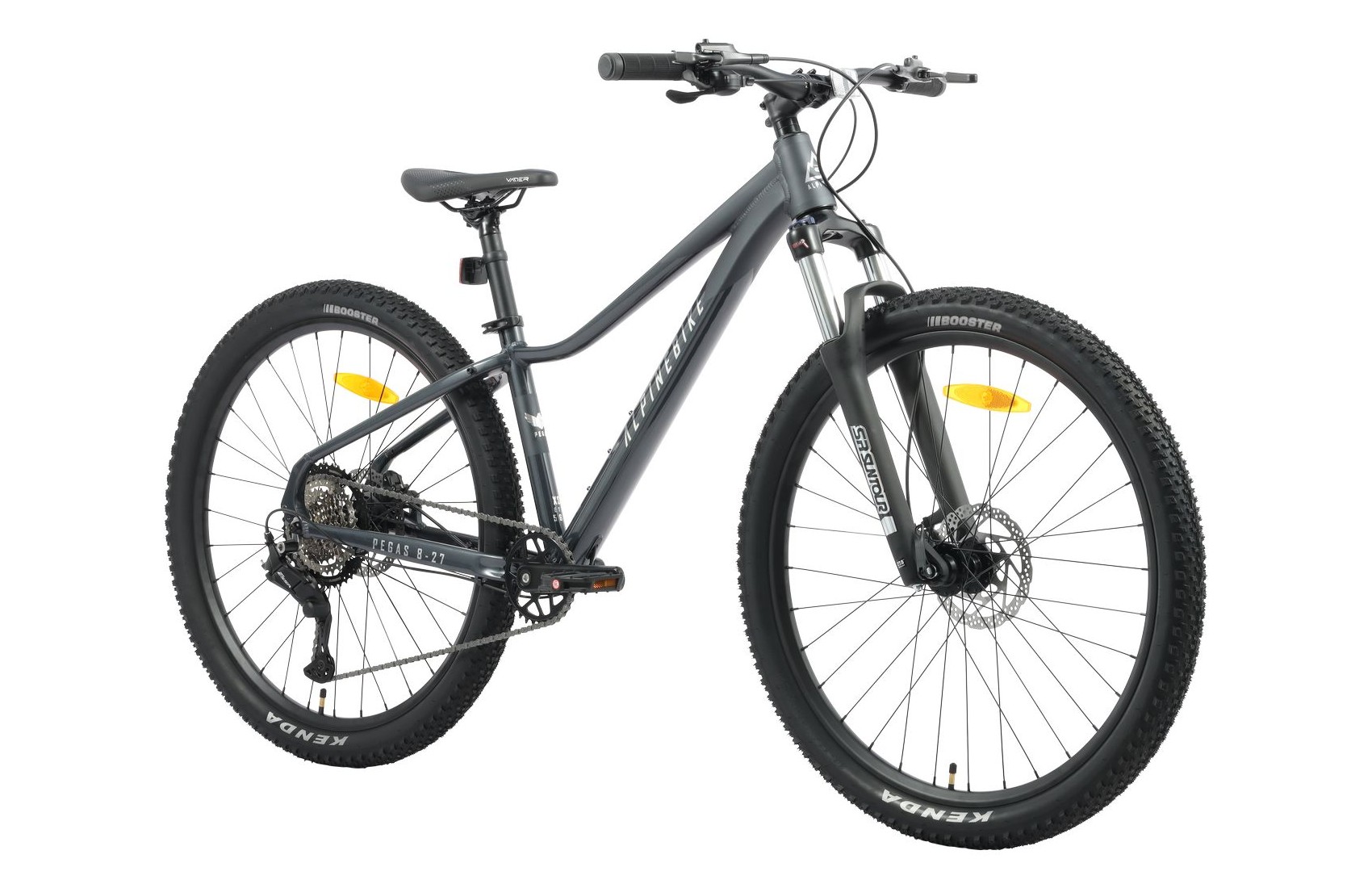 Женский горный велосипед с оборудованием любительского класса Shimano, 8 скоростей. Подходит для активной езды по различным дорогам и пересеченной местности. Диаметр колес - 27,5 дюймов. Вес - 15 кг.