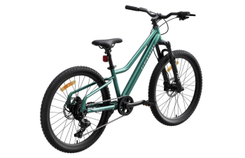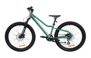Велосипед, предназначенный для детей в возрасте от восьми до тринадцати лет, с оборудованием начального любительского класса Shimano, 7 скоростей. Подходит для прогулочного катания в городских условиях и по несложным маршрутам в лесу. Диаметр колес - 24 дюйма. Вес - 12,7 кг.