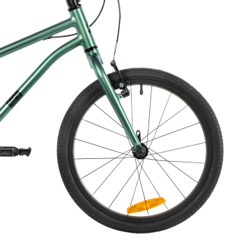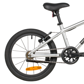 Велосипед, предназначенный для детей в возрасте от трех до шести лет, без переключения передач. Технические особенности: легкая алюминиевая рама (скрытая проводка, прямой рулевой стакан, кареточный стакан BSA), жесткая алюминиевая вилка, двойные алюминиевые обода (под ниппель AV), ободные механические тормоза Logan V-brake (алюминиевые рычаги), защита цепи, подножка, звонок, катафоты. Подходит для обучения и прогулочного катания в городских условиях. Диаметр колес - 16 дюймов. Вес - 6,5 кг.