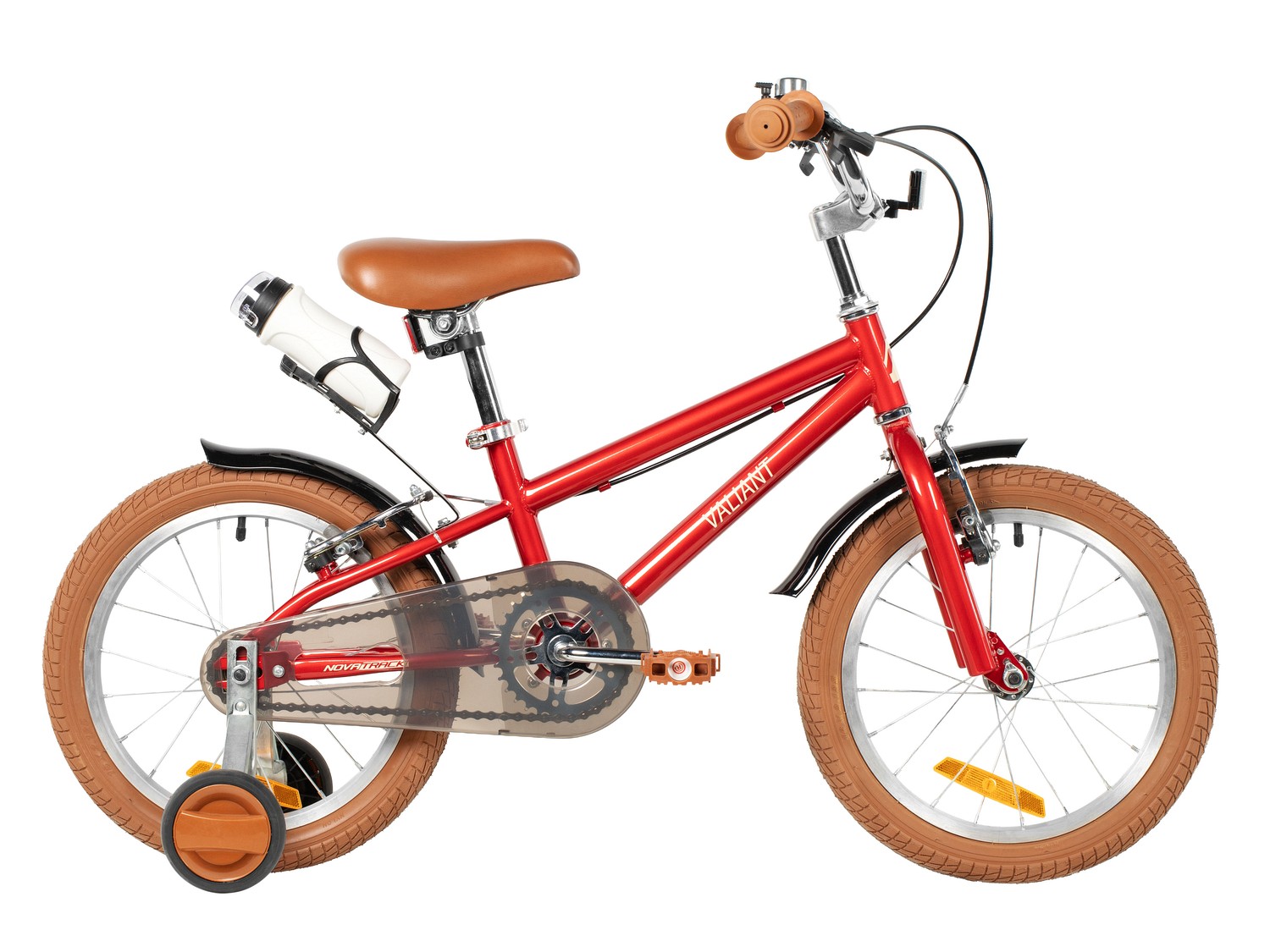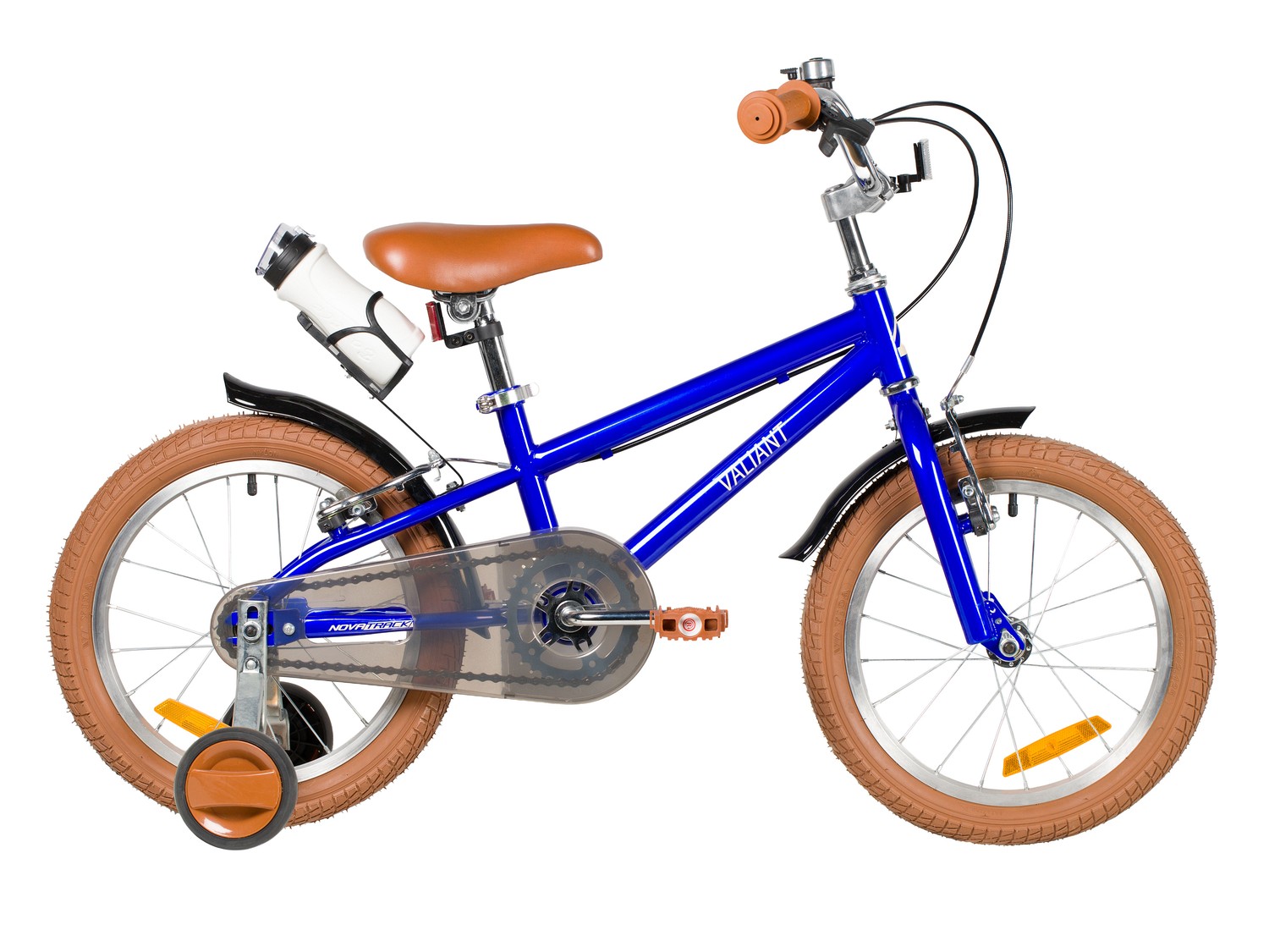Велосипед, предназначенный для детей в возрасте от двух до четырех лет, без переключения передач. Технические особенности: прочная стальная рама (открытая проводка, прямой рулевой стакан), жесткая стальная вилка, одинарные алюминиевые обода (под ниппель AV), ободные механические тормоза Sparkle V-brake (стальные рычаги), полная защита цепи, съемные боковые колеса, крылья, флягодержатель с бутылочкой, звонок, катафоты. Подходит для обучения и прогулочного катания в городских условиях. Диаметр колес - 14 дюймов. Вес - 10 кг.