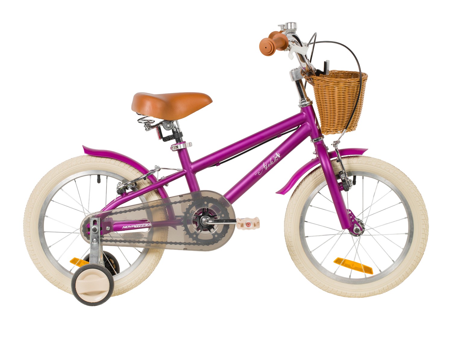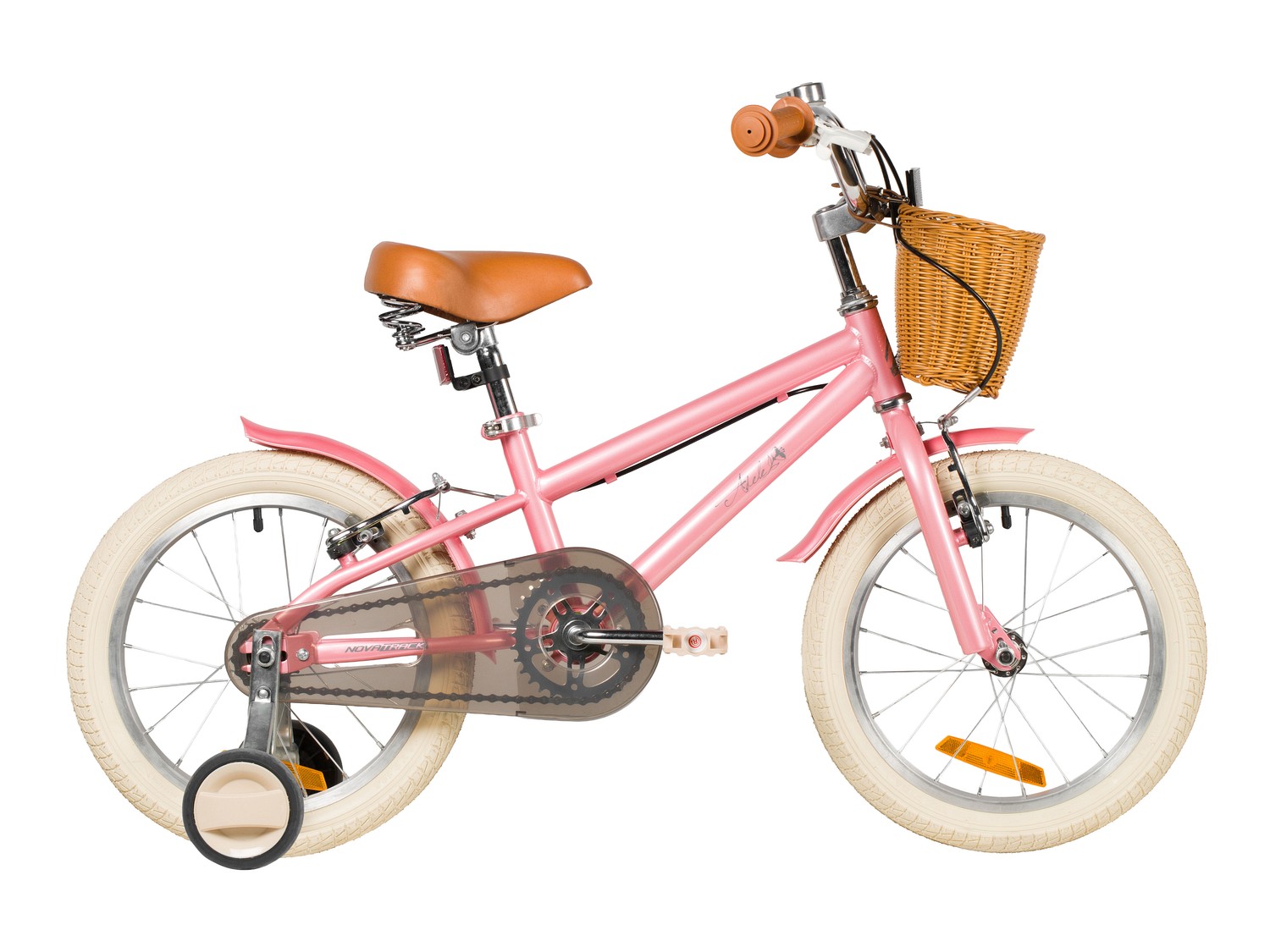 Велосипед, предназначенный для девочек в возрасте от четырех до восьми лет, без переключения передач. Технические особенности: прочная стальная рама, жесткая стальная вилка, одинарные алюминиевые обода (ниппель AV), ободные механические тормоза V-brake, полная защита цепи, съемные боковые колеса, крылья, передняя корзинка, звонок, катафоты. Подходит для обучения и прогулочного катания в городских условиях. Диаметр колес - 18 дюймов. Вес - 10,8 кг.