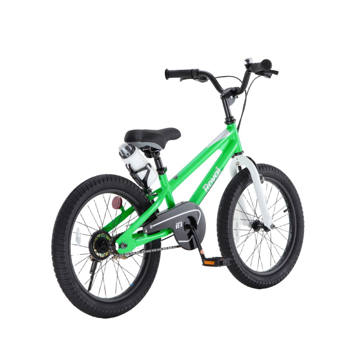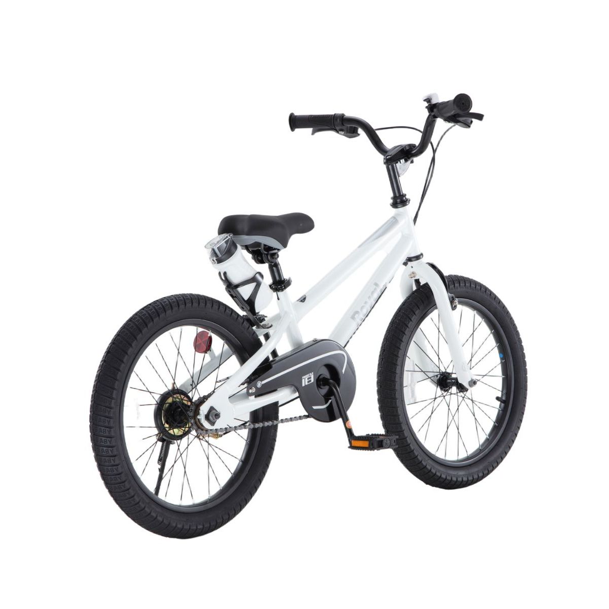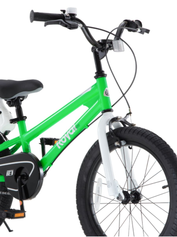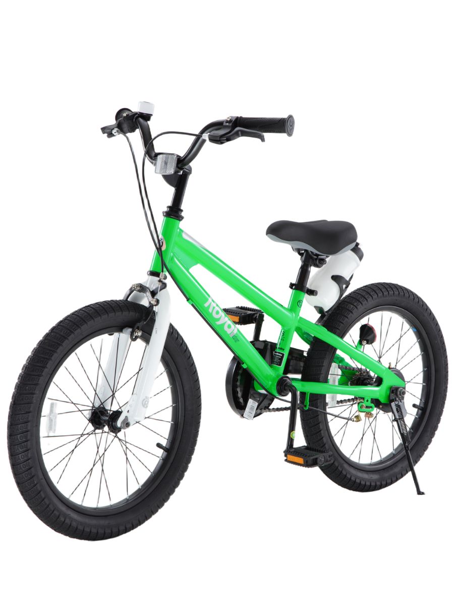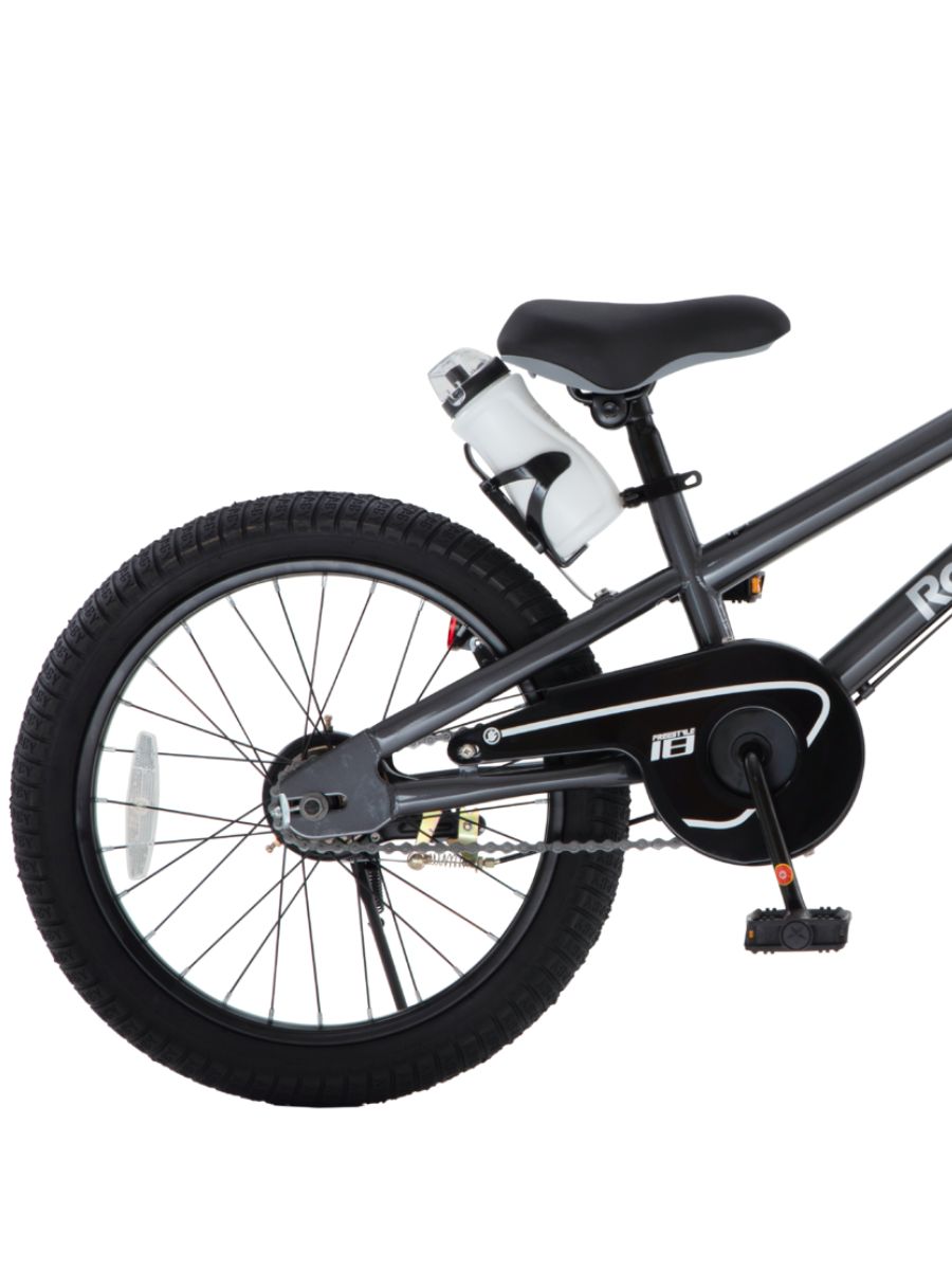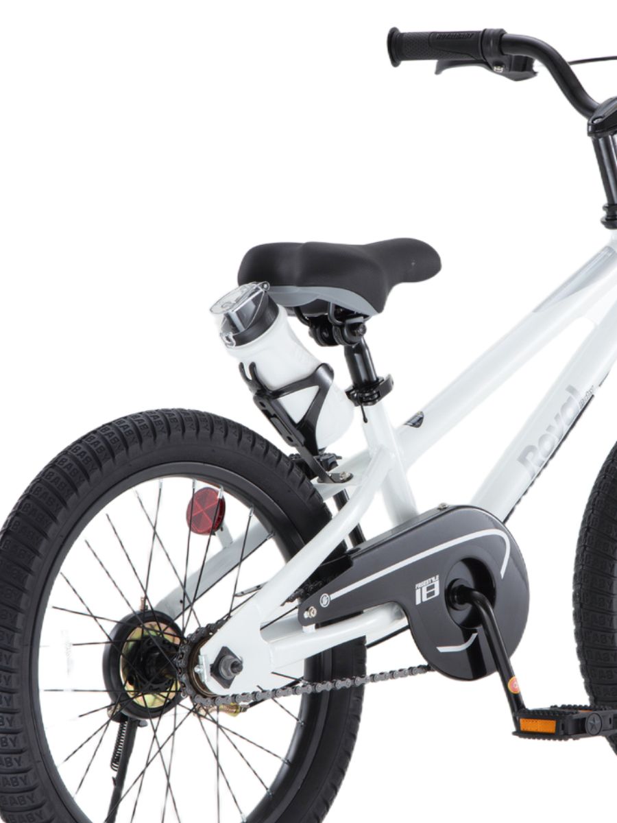 Велосипед, предназначенный для детей в возрасте от четырех до восьми лет, без переключения передач. Технические особенности: прочная стальная рама (прямой рулевой стакан, горизонтальные дропауты), жесткая стальная вилка, одинарные обода (под ниппель AV), передний клещевой тормоз, задний барабанный тормоз, съемные боковые колеса, полная защита цепи, катафоты, звонок, подножка, флягодержатель с бутылкой под сиденьем. Подходит для обучения и прогулочного катания в городских условиях. Диаметр колес - 18 дюймов. Вес - 12 кг.