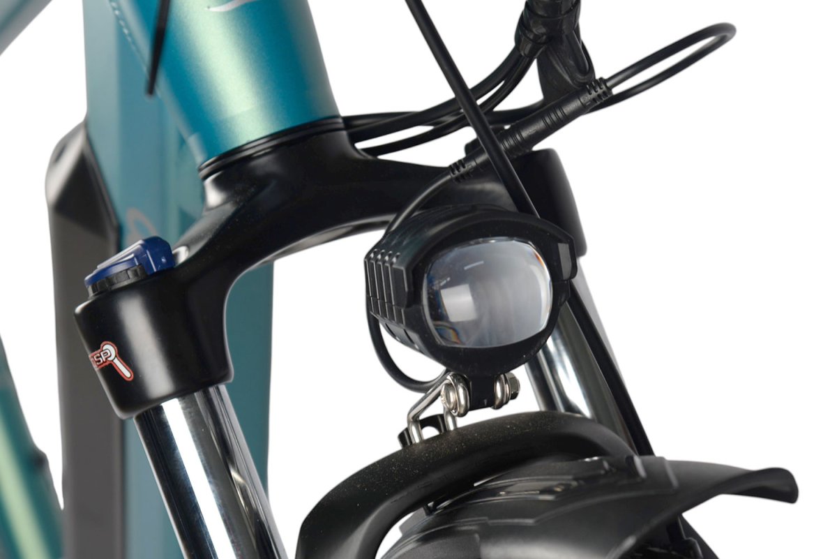 - алюминиевая рама (сплав 6061, скрытая проводка, прямой рулевой стакан, кареточный стакан BSA, съемный петух, интегрированный аккумулятор, крепление калипера IS),