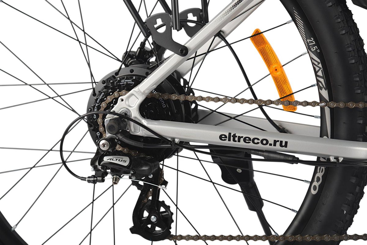Электродвухподвес с навесным оборудованием Shimano, 8 скоростей. Подходит для активной езды по различным дорогам и пересеченной местности. Пробег до 50 км на одной зарядке. Грузоподъемность - 110 кг. Время заряда батареи: 6-8 часов. Рекомендуемая температура эксплуатации: -10°C до +40°C. Диаметр колес - 27,5 дюймов. Вес - 21 кг.