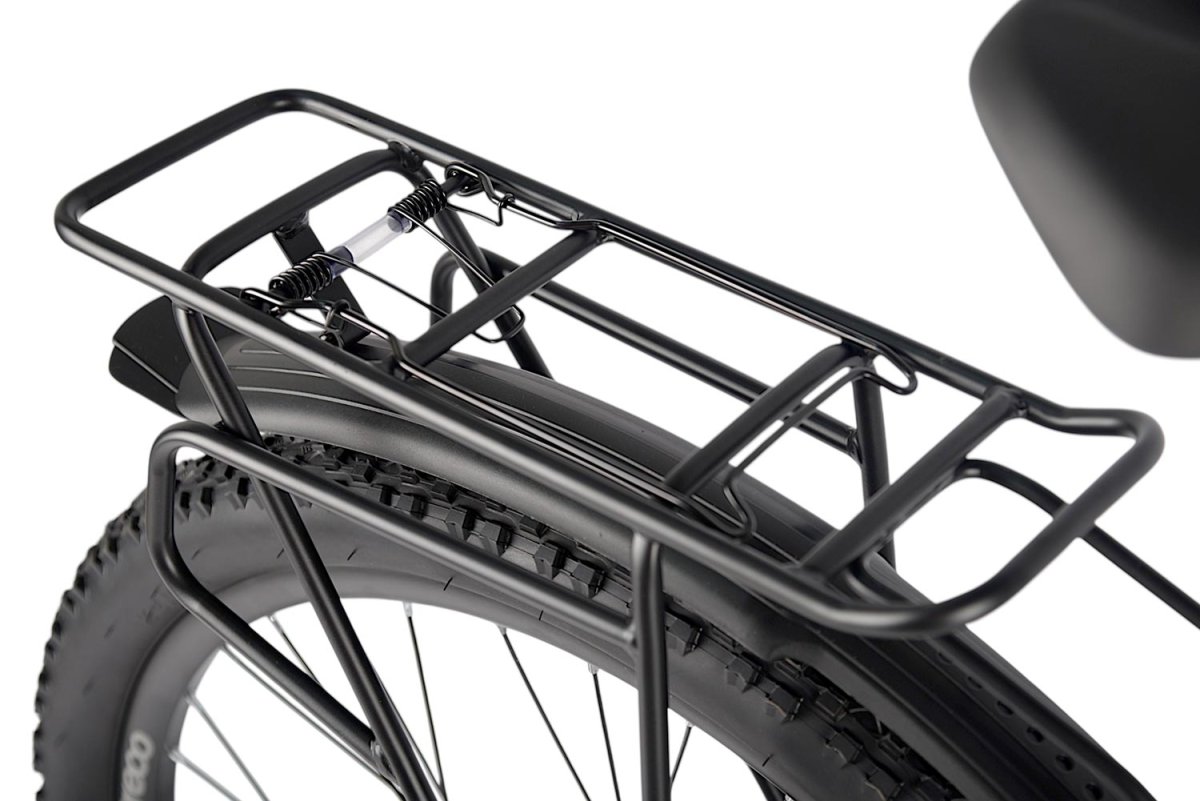 - алюминиевая рама (сплав 6061, скрытая проводка, прямой рулевой стакан, кареточный стакан BSA, съемный петух, интегрированный аккумулятор, крепление калипера IS),
