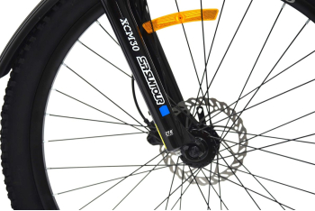 - амортизационная вилка SR Suntour XCM30 (пружинно-эластомерная, ход 100 мм, блокировка, регулировка преднагрузки, крепление калипера Post Mount),