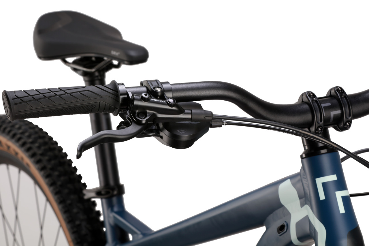 - легкая алюминиевая рама (сплав 6061, геометрия Trail, двойной баттинг, конический рулевой стакан, постмаунт дропауты, внутренняя проводка, ЧПУ-обработка деталей, сквозная ось 148х12 мм),