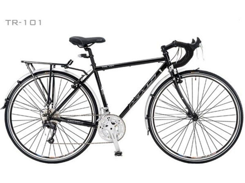 Шоссейный велосипед с оборудованием профессионального класса Shimano SLX, 18 скоростей, алюминиевая рама, жесткая вилка из хроммолибдена, двойные обода, ободные тормоза Tektro 857 V. Подходит для езды по асфальтированным дорогам и шоссе.