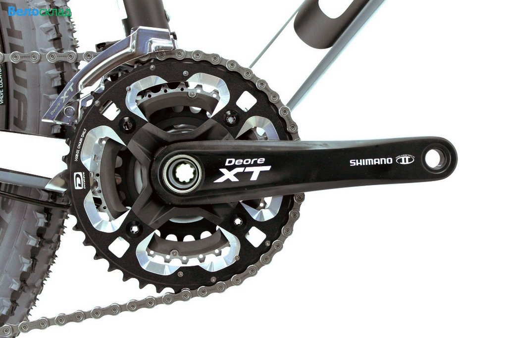 Передает вращение от шатунов на кассету. Теоретически цепь представляет собой подшипники скольжения (втулки), соединенные между собой боковыми пластинами. Цепи разнятся по длине, то есть количеству звеньев, и по ширине. Чем больше скоростей на велосипеде, тем цепь уже. Данный элемент является открытым, поэтому нуждается в частой смазке и чистке. Во многом плавное переключение передач, а соответственно и ход велосипеда зависят от смазки цепи и степени ее загрязнения.
