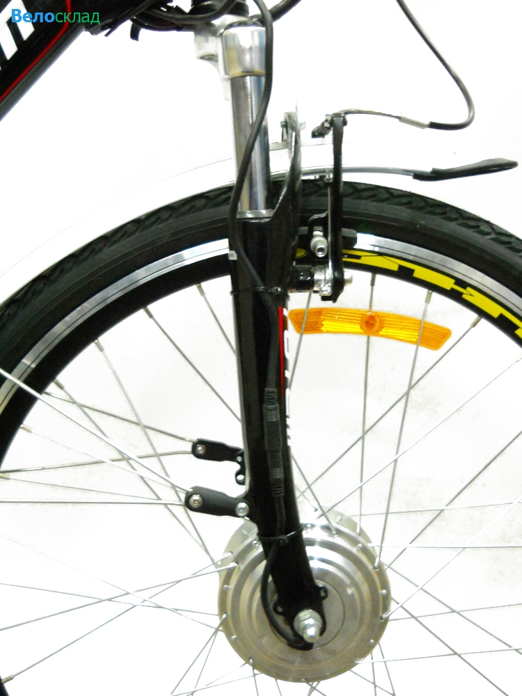 Велосипед на алюминиевой раме с электромотором BAFANG DC36V250W оснащен батареей Li-ion 36V/9Ah. Способен развивать скорость 25 км/ч по ровной плоскости. Предназначен для катания по асфальтированному покрытию или грунтовой дороге. Время заряда аккумулятора 5-6 часов. При полностью заряженной батарее Вы сможете проехать до 45км пути. Диаметр колес-26 дюймов. Вес-24 кг.