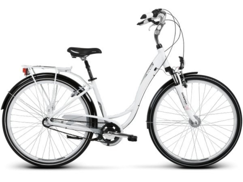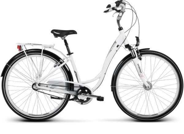 Женский велосипед начального уровня с оборудованием любительского класса Shimano, 3 скорости. Алюминиевая рама Performance Alu, передний амортизатор SR Suntour CR-8V регулируемый, двойные обода KROSS. Надежные ободные тормоза KROSS V-brake. Подходит для обучения и легких прогулок. Диаметр колес 26 дюймов, вес 14 кг.