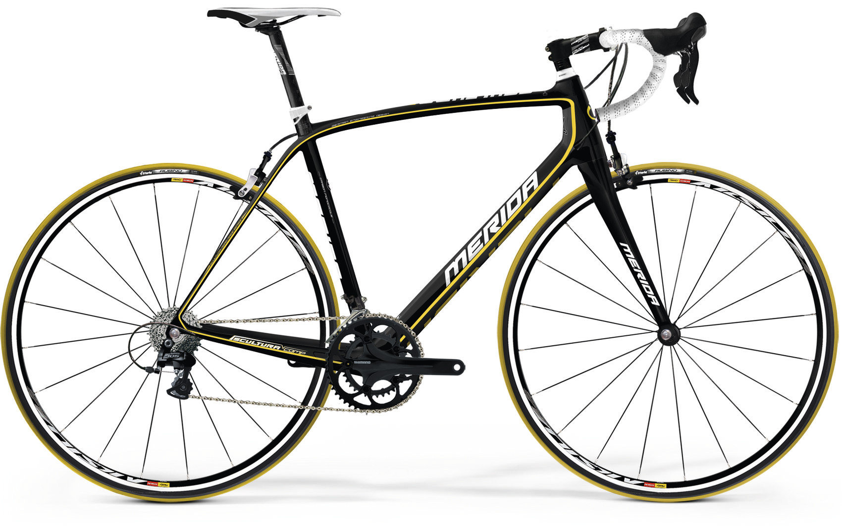Шоссейный велосипед профессионального уровня с оборудованием профессионального класса Shimano, 20 скоростей. Карбоновая рама Scultura Comp, жесткая вилка BC Carbon comp, двойные обода Mavic Aksium. Надежные ободные тормоза Merida Road Pro. Подходит для быстрой спортивной езды по шоссе и участия в гонках. Диаметр колес 28 дюймов.