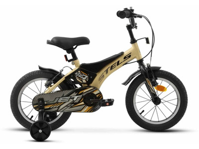 Велосипед, предназначенный для детей в возрасте от двух до четырех лет, без переключения передач. Технические особенности: легкая рама из магниевого сплава, жесткая вилка из магниевого сплава, одинарные стальные обода, передний тормоз - ободной, задний тормоз - дисковый механический (ротор 140 мм), защита цепи, съемные боковые колеса, пластиковые крылья, звонок. Подходит для обучения и прогулочного катания в городских условиях. Диаметр колес - 14 дюймов. Вес - 8,1 кг.