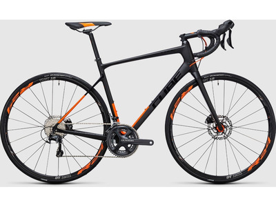 Шоссейный велосипед высшего уровня с оборудованием начального профессионального класса Shimano, 22 скорости. Технические особенности: карбоновая рама GTC Monocoque Twin Mold Technology, жесткая карбоновая вилка CUBE CSL Race, двойные обода CUBE RA 1.9 Aero Disc, дисковые гидравлические тормоза Shimano 105 BR-R7070. Подходит для быстрой спортивной езды по шоссе и участия в гонках. Диаметр колес - 28 дюймов. Вес - 9,3 кг.