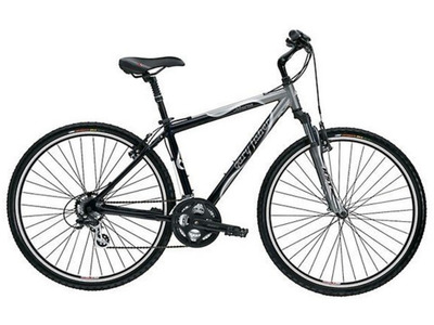 Дорожный велосипед с оборудованием Shimano Acera, алюминиевая рама Silver Series aluminum, передний амортизатор RST Neon C8, 60mm travel, усиленные обода Alloy hubs; Matrix 750 rims, тормоз Tektro V w/Shimano EF50 levers.