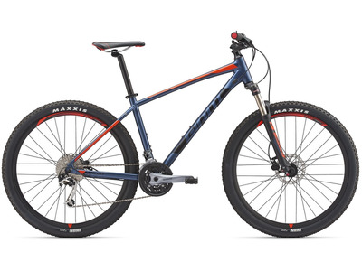 Хардтейл для езды в стиле кросс-кантри с оборудованием начального любительского класса Shimano, 16 скоростей. Технические особенности: алюминиевая рама ALUXX-Grade Aluminum, амортизационная вилка SR Suntour XCE, двойные обода Giant GX03V, дисковые гидравлические тормоза Tektro HDC M275. Подходит для активной езды по различным дорогам и пересеченной местности. Диаметр колес - 27.5 дюймов. Вес - 14,4 кг.