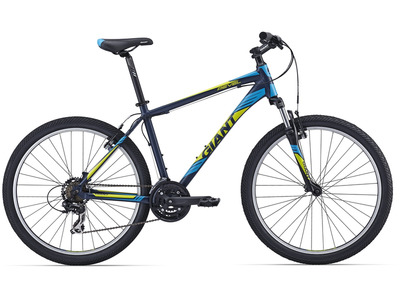 Горный велосипед с оборудованием начального класса Shimano, 21 скорость. Технические особенности: алюминиевая рама ALUXX-Grade Aluminum, амортизационная вилка SR Suntour XCE 28, двойные алюминиевые обода Giant, надежные ободные тормоза MTB linear pull. Подходит для активной езды по различным дорогам и пересеченной местности. Диаметр колес - 27.5 дюймов. Вес - 14,4 кг.