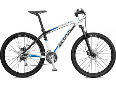 Горный велосипед с оборудованием любительского класса Shimano Altus , 21 скорость, алюминиевая рама Scott Performance, передний амортизатор SR Suntour XCT V2 с ходом 80мм, двойные обода Araya GP-710, ободные механические тормоза Scott Comp . Подходит для обучения и легких прогулок.