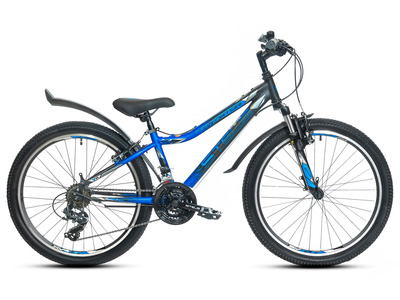 Велосипед, предназначенный для детей в возрасте от восьми до тринадцати лет, с оборудованием начального класса Shimano, 18 скоростей. Технические особенности: алюминиевая рама, амортизационная вилка, двойные алюминиевые обода, надежные ободные тормоза V-brake, крылья, звонок. Подходит для прогулочного катания в городских условиях и по несложным маршрутам в лесу. Диаметр колес - 24 дюйма. Вес - 14.2 кг.
