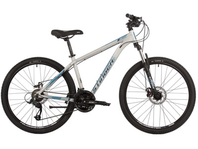 Горный велосипед с оборудованием начального класса Shimano, 21 скорость. Технические особенности: алюминиевая рама 6061, амортизационная вилка STG Spiсe, двойные обода Felgebeiter VB-18, дисковые механические тормоза STG Disc. Подходит для прогулочной езды по различным дорогам и пересеченной местности. Диаметр колес - 27,5 дюймов. Вес - 15,6 кг.