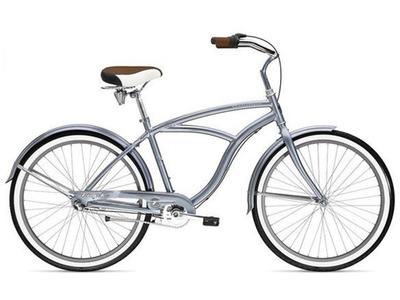 Круизер с оборудованием с одной скоростью, алюминиевая рама Alpha White Aluminum, вилка High tensile steel, обода Alloy front hub, steel bolt-on rear hub; 36-hole rims, ножно тормоз.