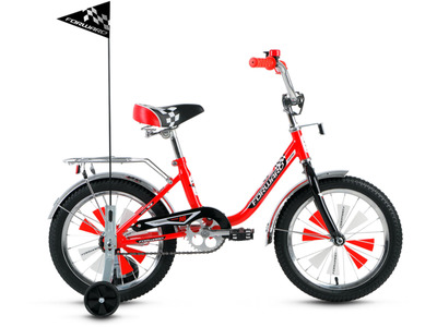 Велосипед, предназначенный для детей в возрасте от трех до шести лет, без переключения передач. Технические особенности: стальная рама Hi-Ten, жесткая стальная вилка, одинарные обода FWD Single Wall, ножные педальные тормоза, полная защита цепи, съемные боковые колеса, пластиковые крылья, передняя корзинка, звонок. Подходит для обучения и легких прогулок. Диаметр колес - 16 дюймов. Вес - 11 кг.